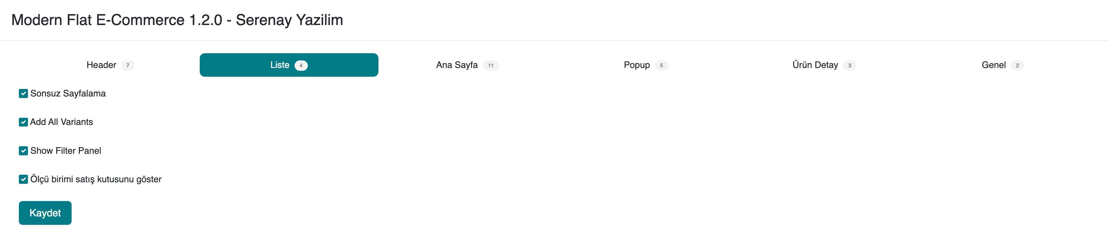 | Sonsuz Sayfalama | Sayfa sonuna gelince yeni ürünler yüklenir | Etkin / Devre Dışı |