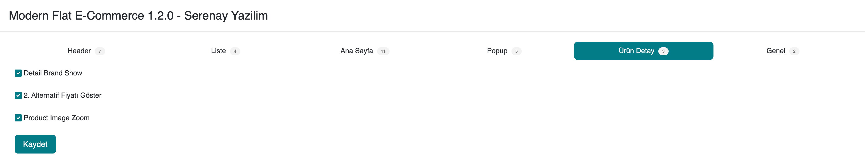 - Ürün detay sayfası fonksiyonlarını açıp/kapatmak