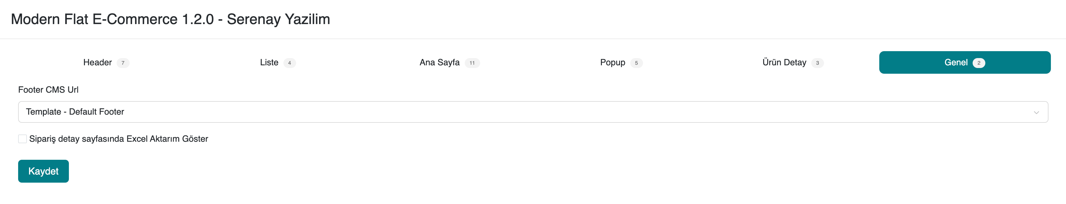 | Footer CMS Url | Site altbilgisinde kullanılacak CMS sayfası | Dropdown (URL anahtarı) |