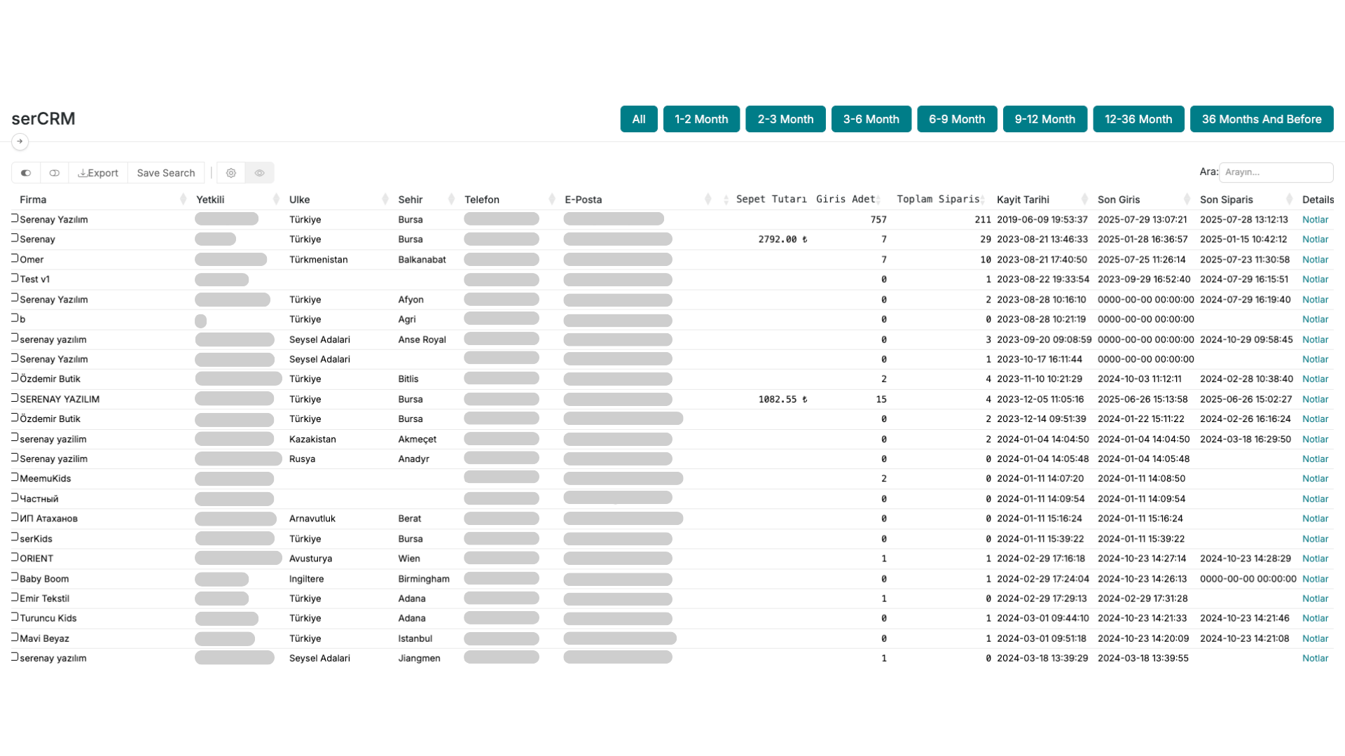 Some customers may not log into the system for a long time after placing their first order. With this feature, you can easily identify such customers, take notes about them, and plan necessary actions.