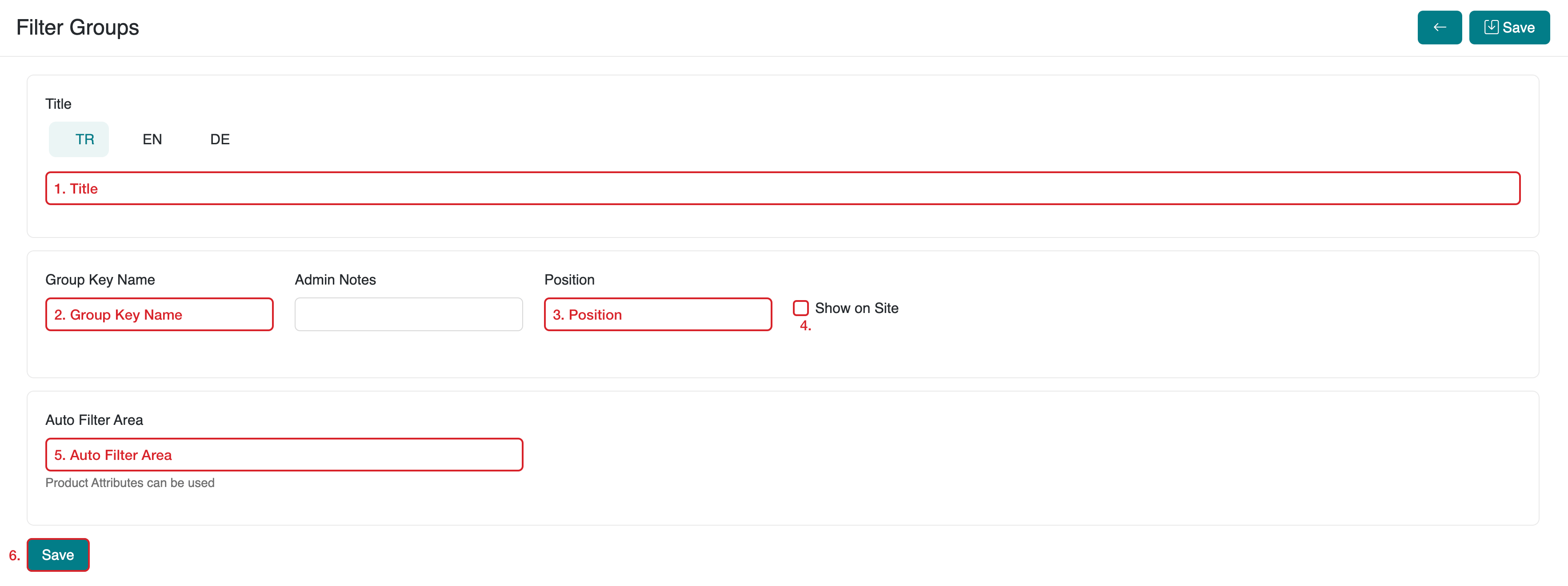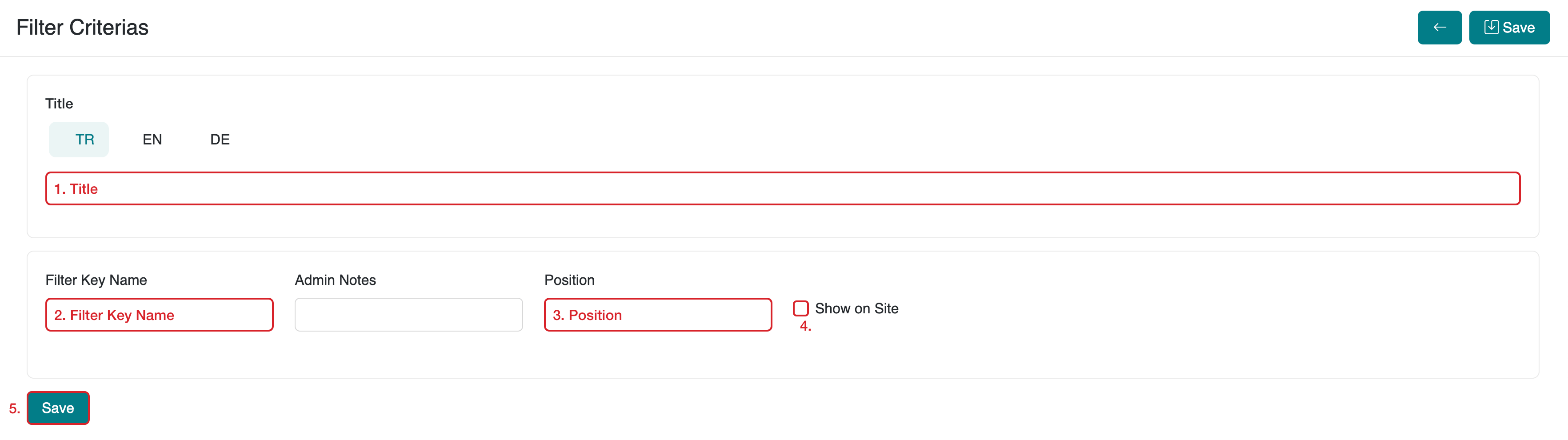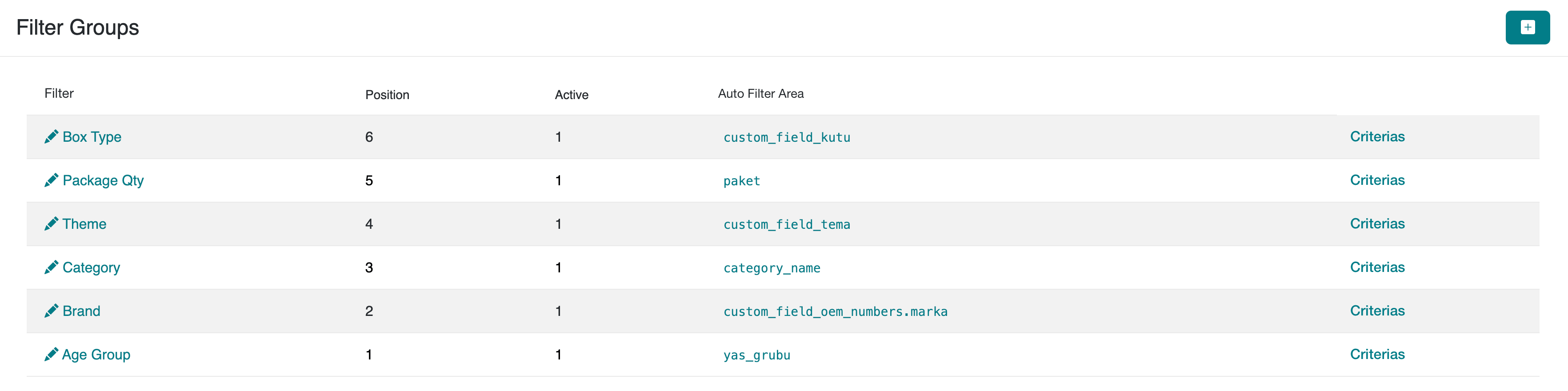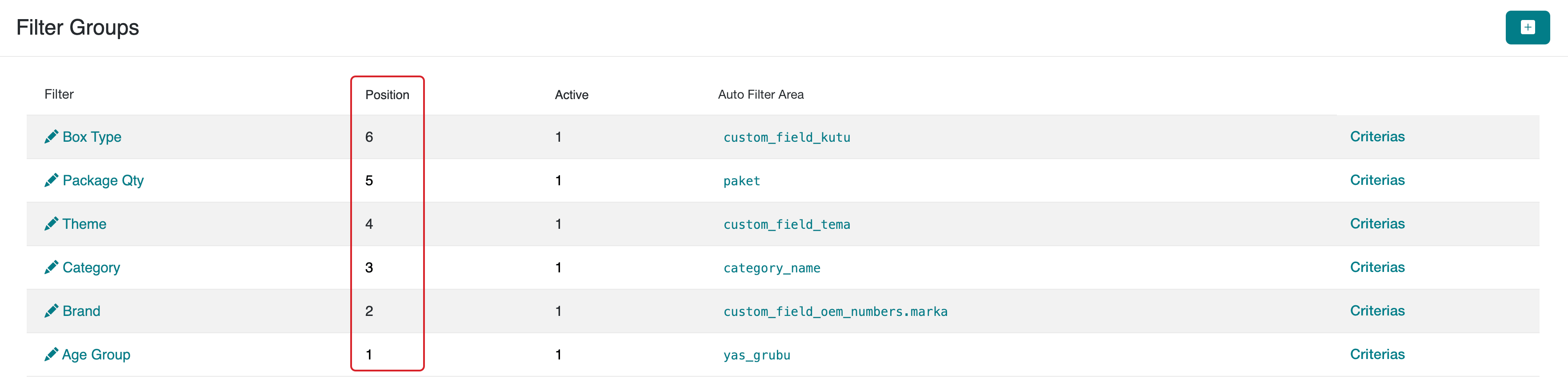 By using position information correctly, you can display the filter group you want users to see first at the top or higher positions. Start with 1 for the highest priority and rank your criteria as 1, 2, 3, etc.