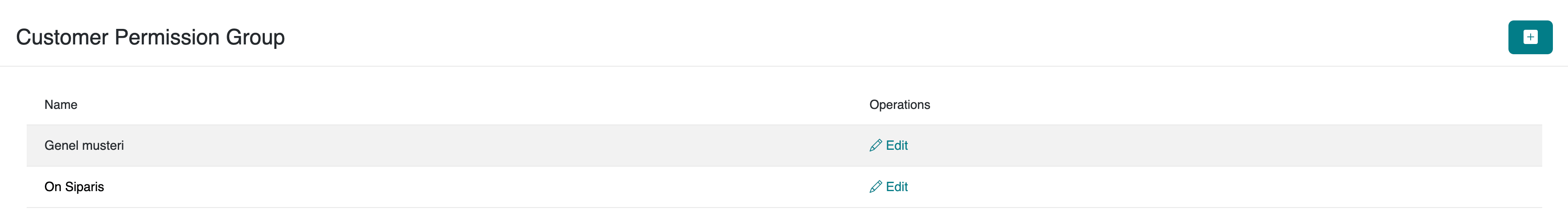 The Customer Permission Group module allows you to manage different user authorizations related to customers within the serB2B system. With this module, you can create new customer permission groups, edit existing groups, delete them, or view them. Each customer permission group can have specific authorization restrictions.