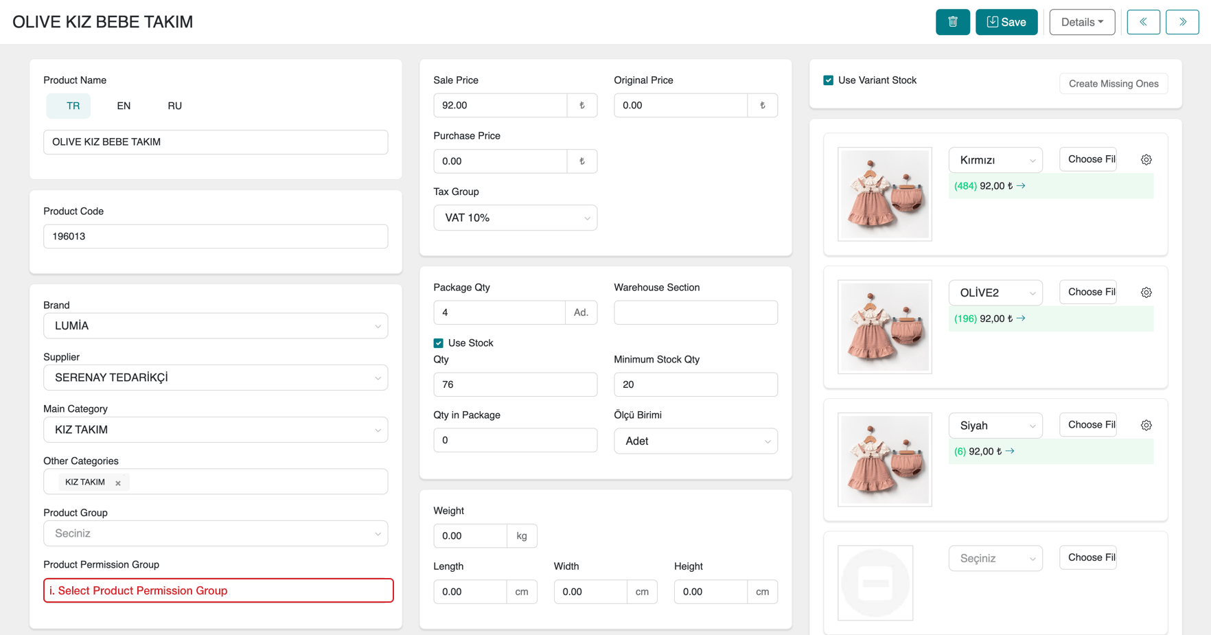 The Product Permission Group module allows you to manage different user authorizations for products within the serB2B system. With this module, you can create new product permission groups, edit existing groups, delete them, or view their details. Each product permission group can have specific authorization restrictions.