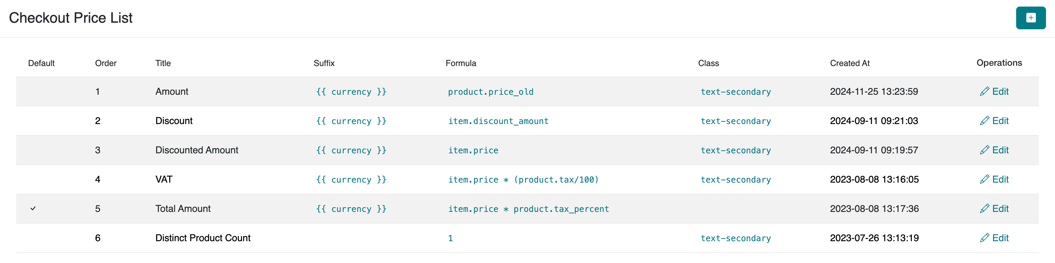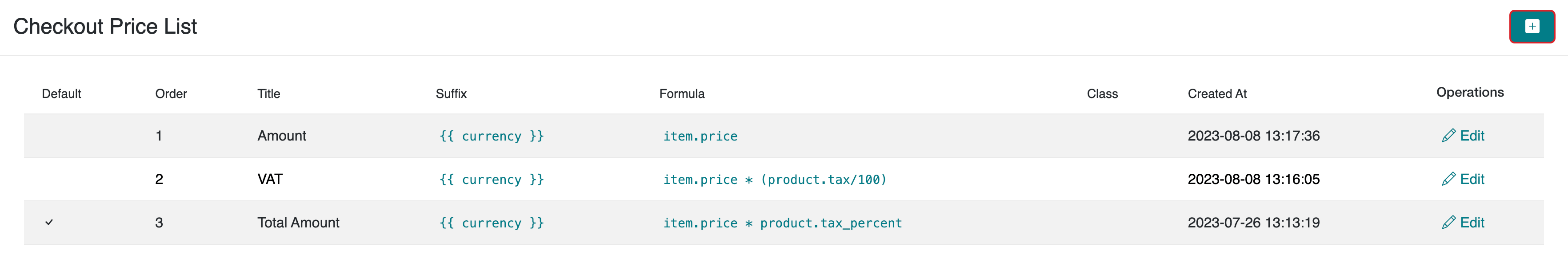 To create a new payment price list, click on the + icon in the top right corner of Settings > Payment Amount Settings. Then, fill out fields such as title, sequence number, formula, style class, and additional commentary to save the list.