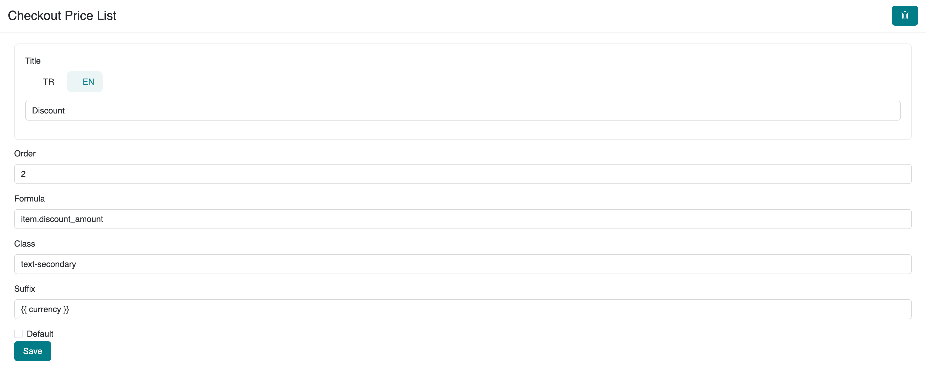 i. To display the discount amount, create a new price list and fill in the form as shown in the example below.