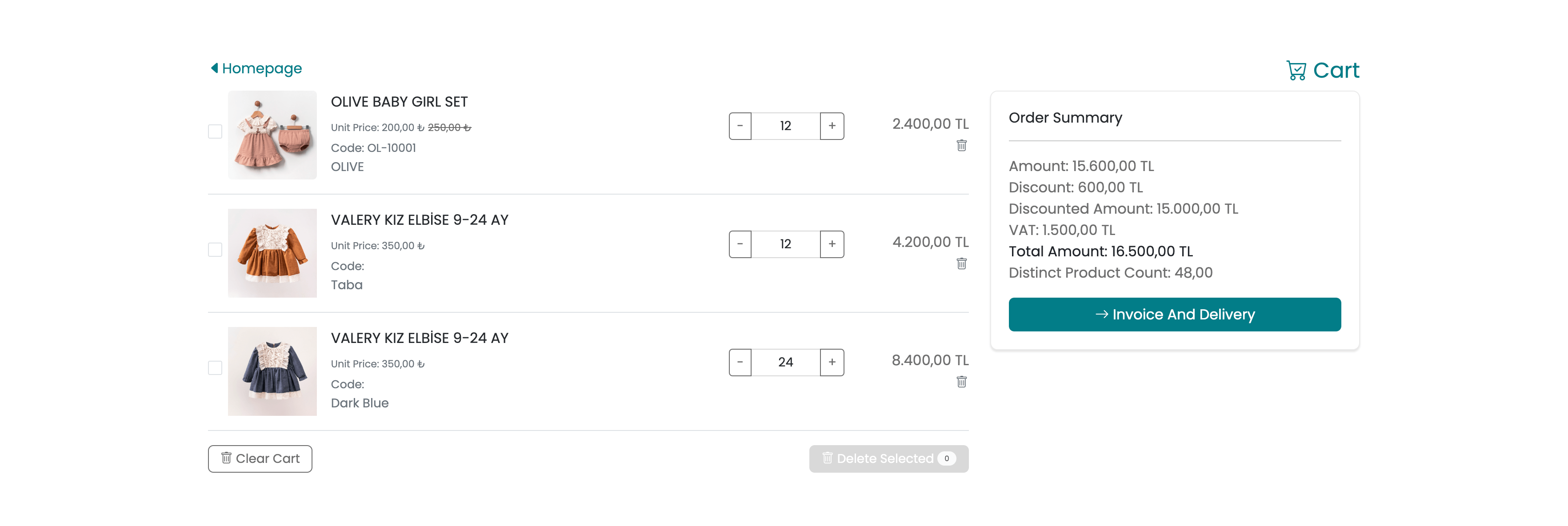 In serB2B system, prices and amounts in the cart section can be customized to be displayed in the most suitable way for customers. This document explains how elements like pricing, discounts, tax information, and product quantities in the cart are structured and how they work. This will enable more efficient management of products and the cart.