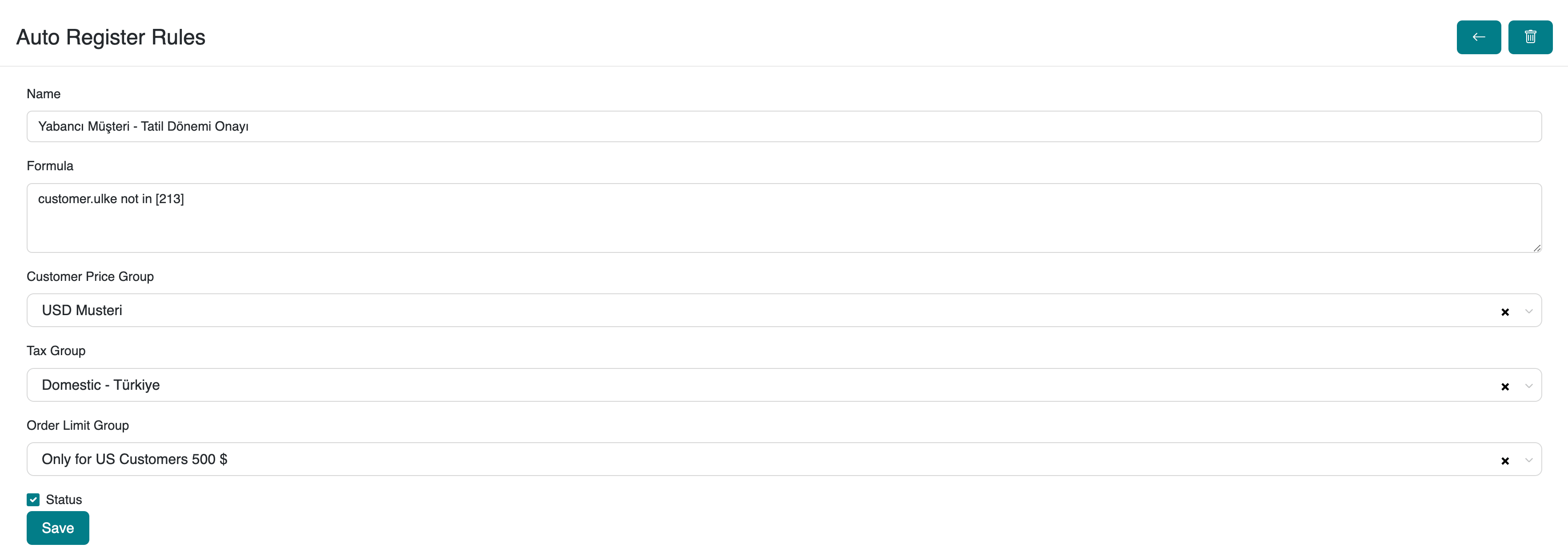 - Order Limit Group: Specify the order limit group this rule will be applied to (e.g., 1000 TL limit for new members).