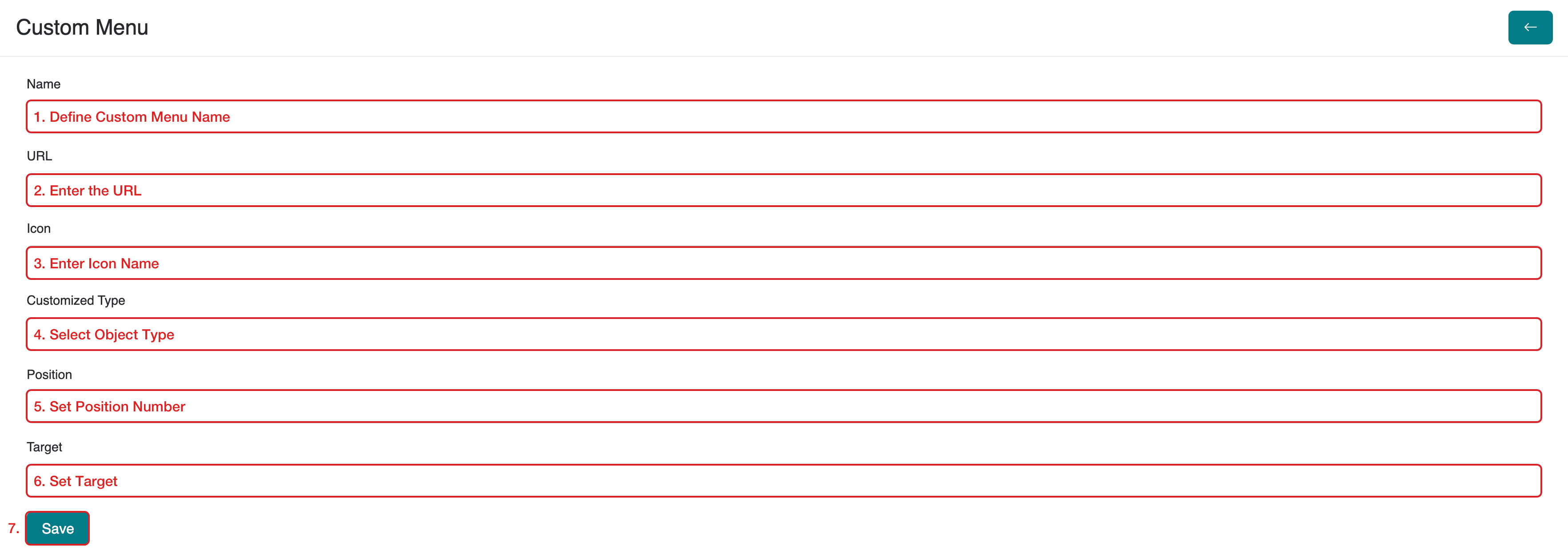 - Enter Icon Name: Assign an appropriate icon for the custom menu.
