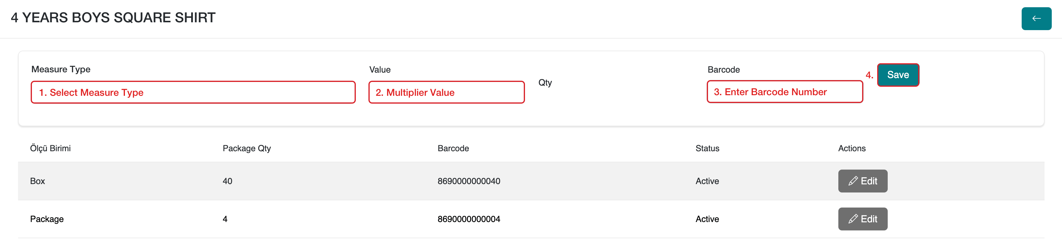 - Enter Barcode Number: Enter a barcode number specific to the measurement unit.
