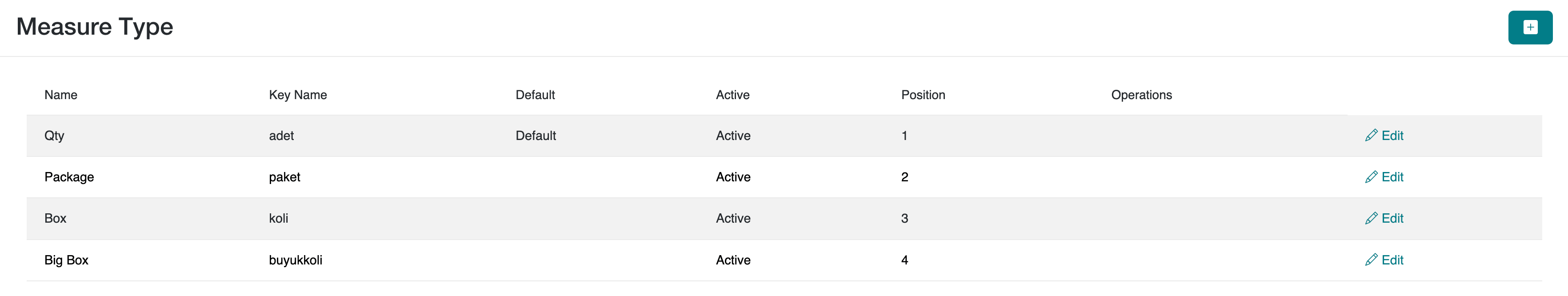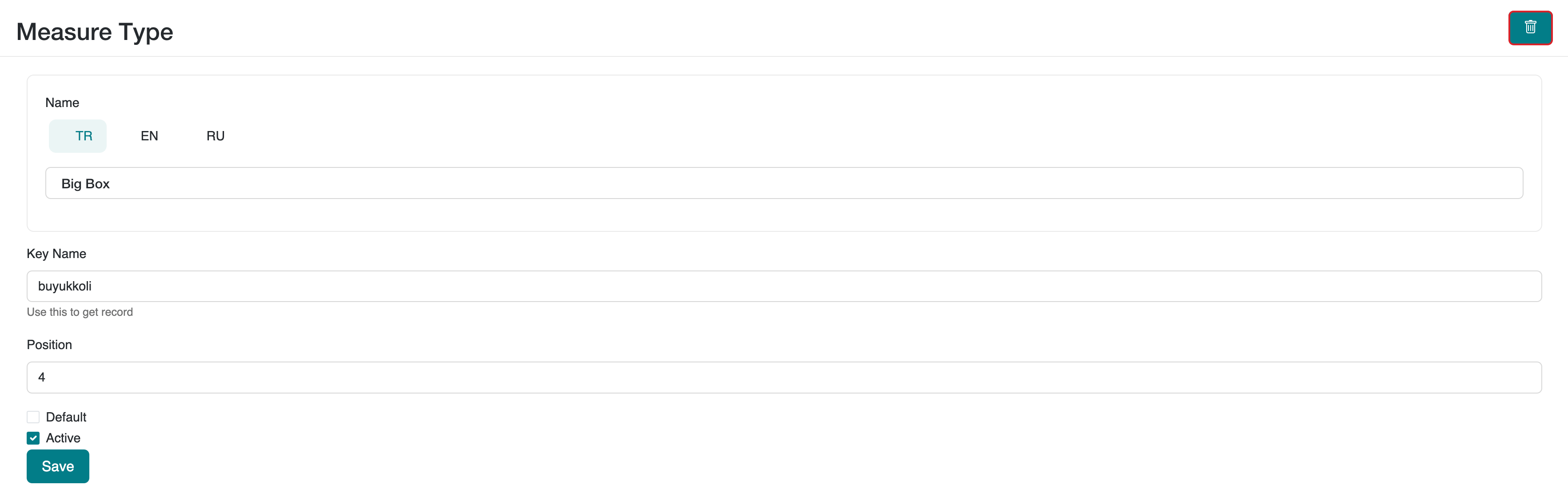 To view or delete existing or newly created measurement units, go to Settings > Measurement Unit in your admin panel. Click the Edit button on the row of the unit you want to delete. Then, click the icon at the top right of the page and confirm to delete.