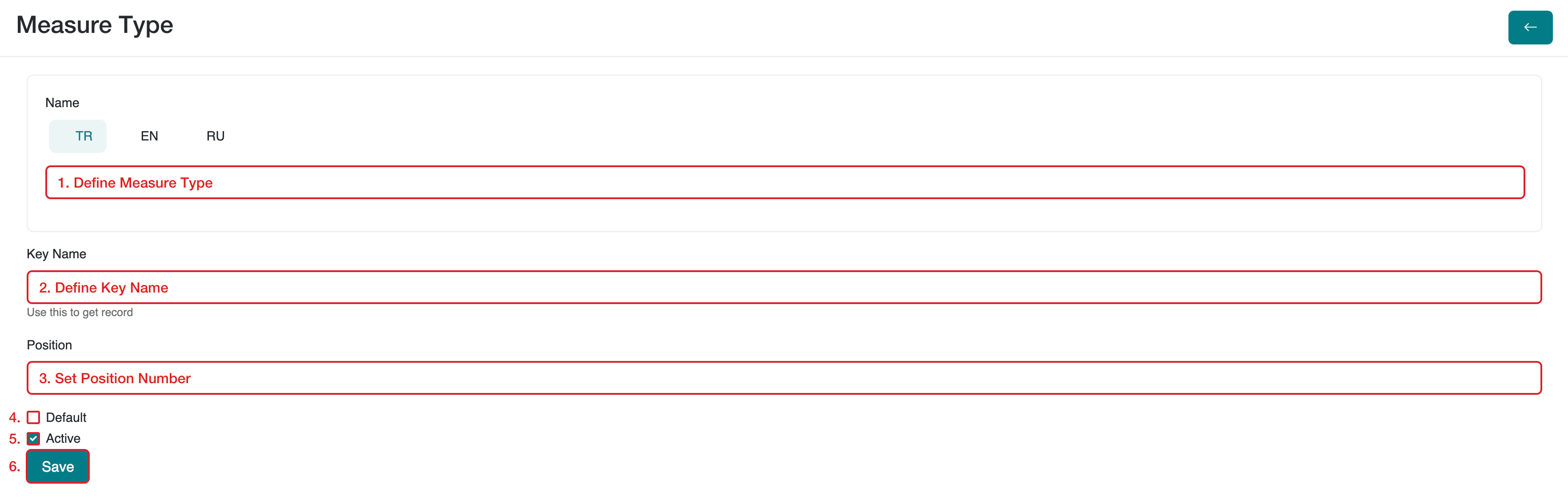 In your serB2B admin panel, navigate to Settings > Measurement Unit and click the + button at the top right corner. Follow the steps below.