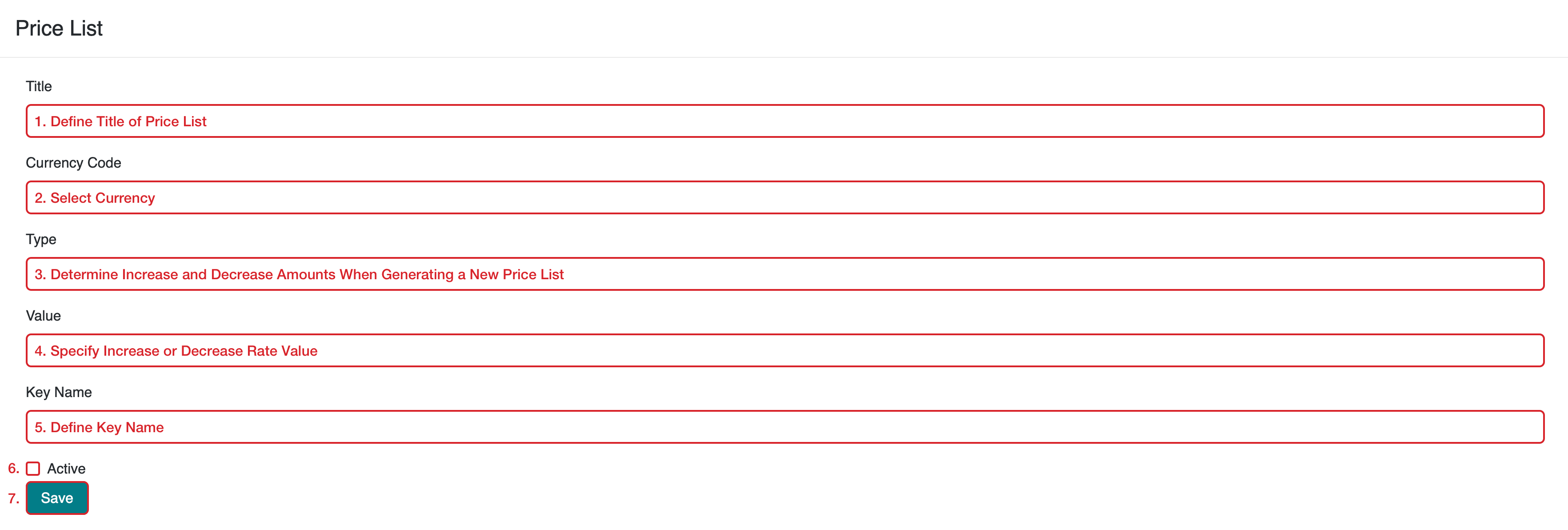- Key Name: Define a key name for the price list. (This key name will be used in your serB2B system and related modules)