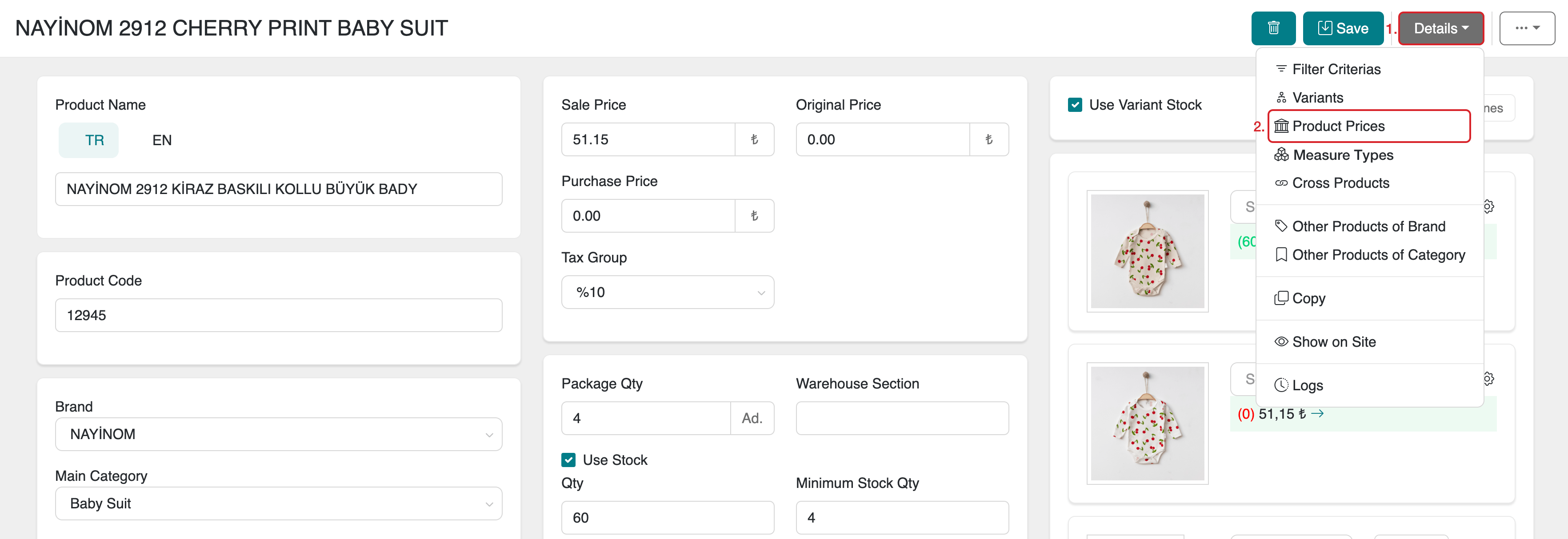 In your serB2B admin panel, go to the Products section, list your products, select a product, and view or define multiple prices for the product by following these steps.