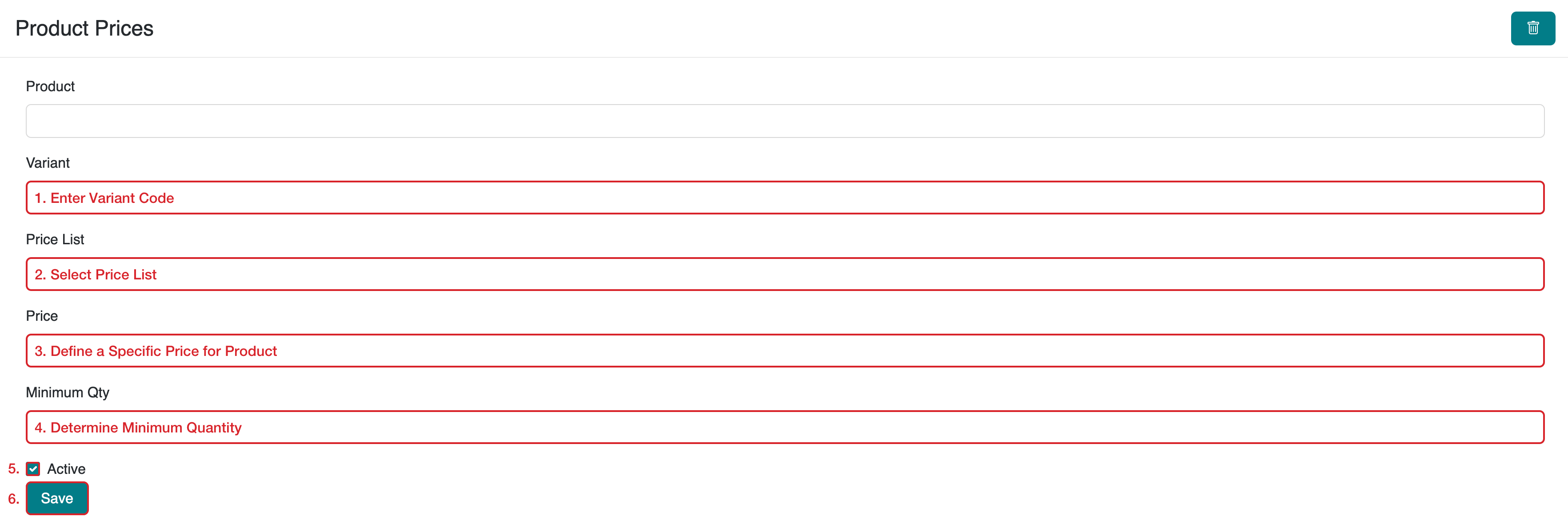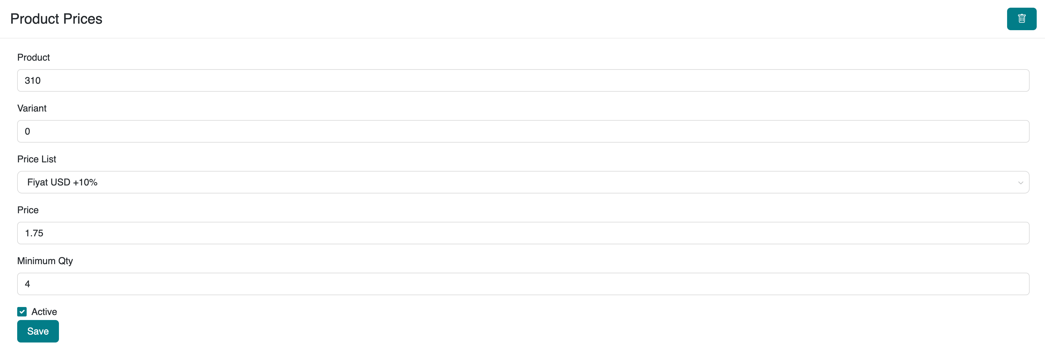 Press the Add Price button in the top-right corner of the page where product prices are listed.