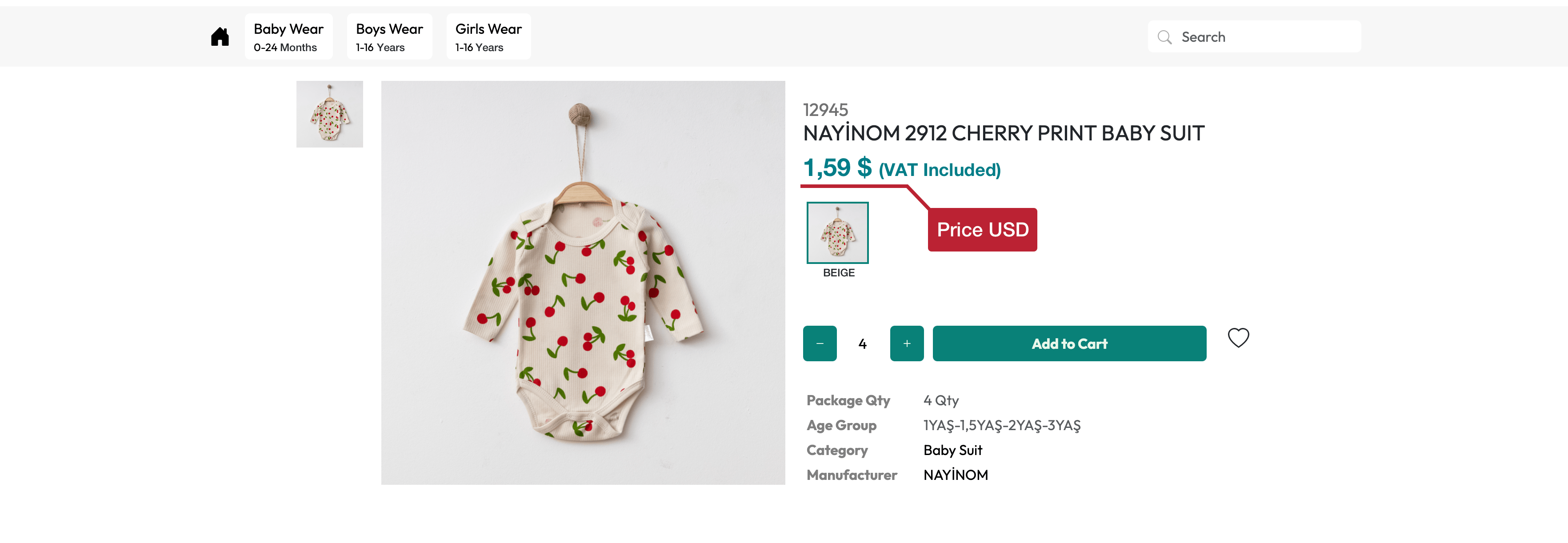 Follow the Adding a New Product Price steps to define a special Dollar (USD) price for a product uploaded to the serB2B system.