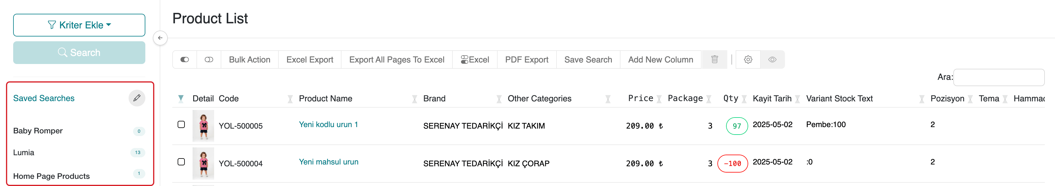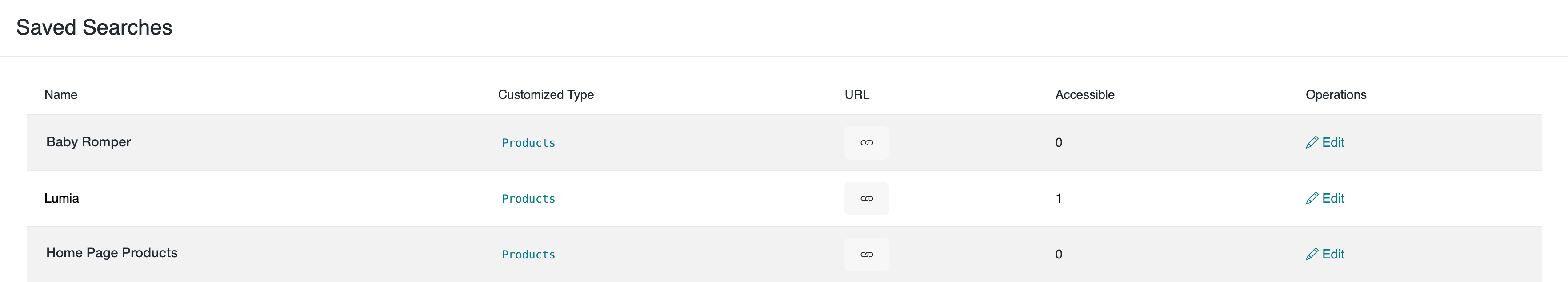 Example: Let’s view the saved searches on the Products page.
