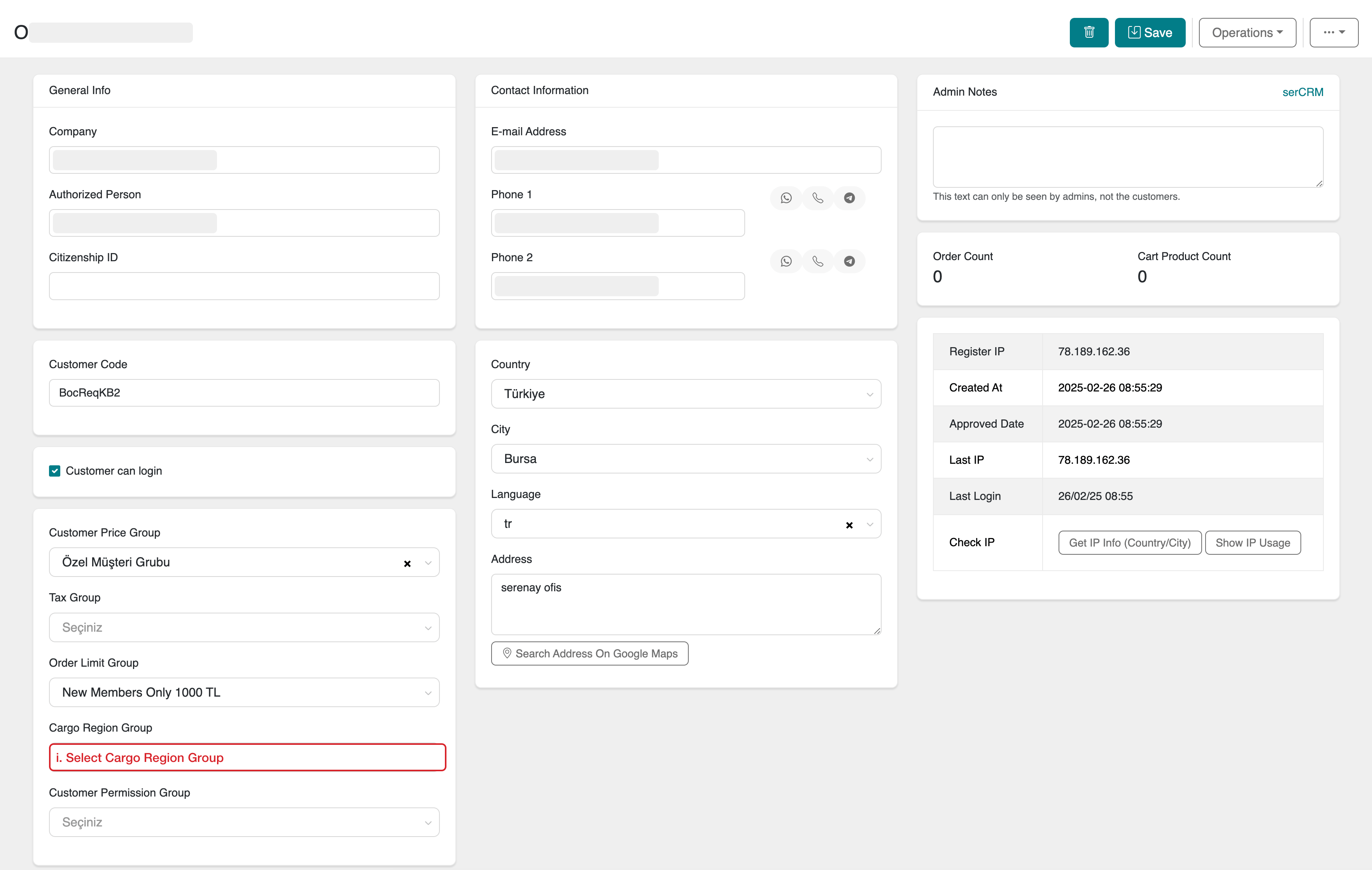 Within each customer record, you can assign a Cargo Region Group for that customer. Based on this assignment, only the cargo carriers and options available for the assigned region will be shown during the order process.