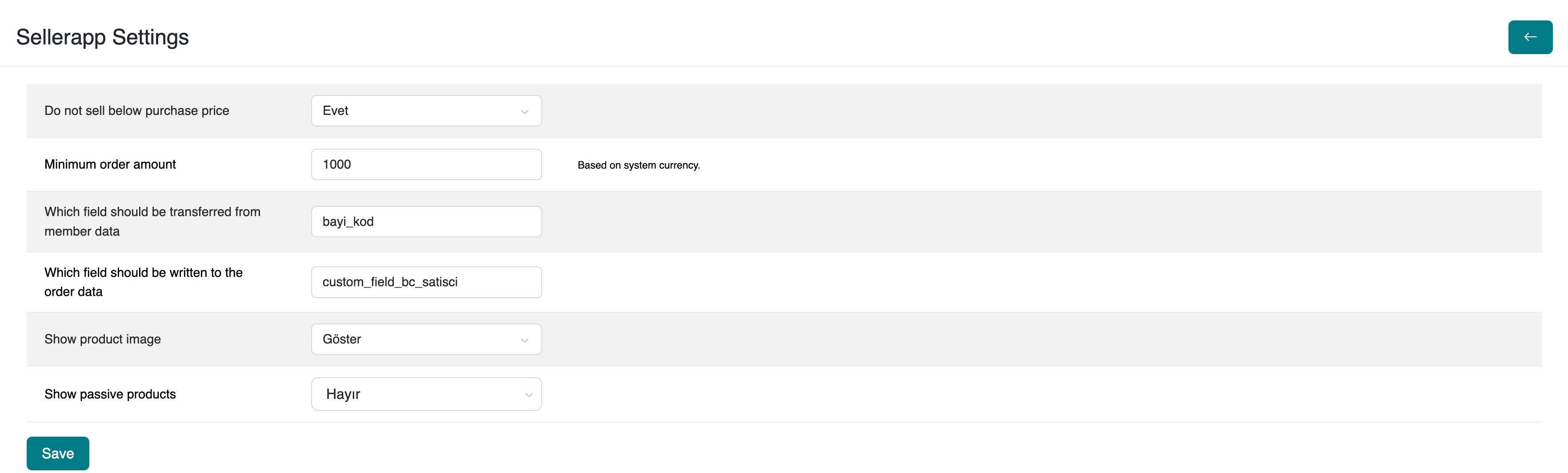 Sellerrapp Settings