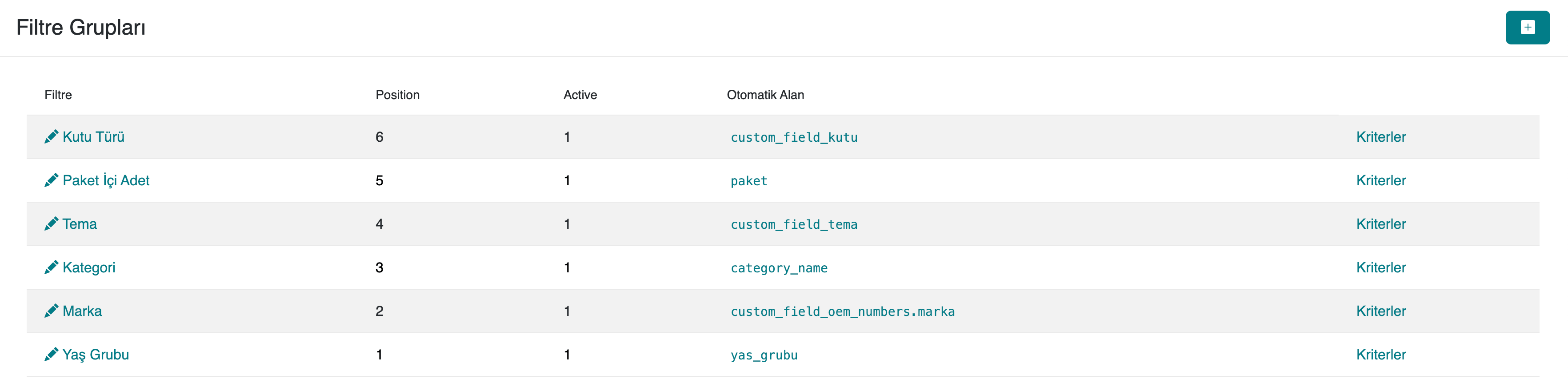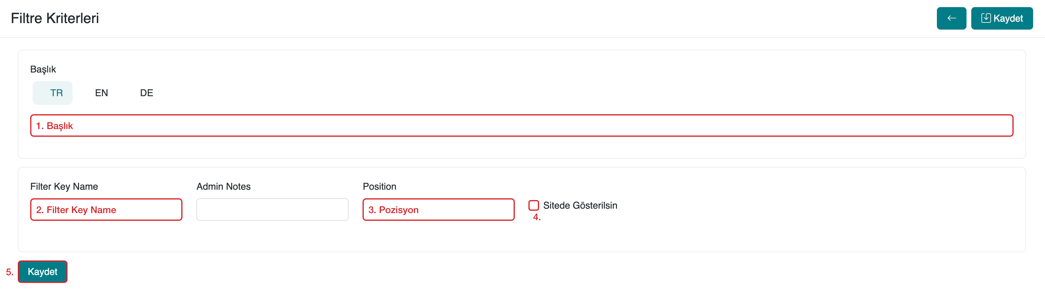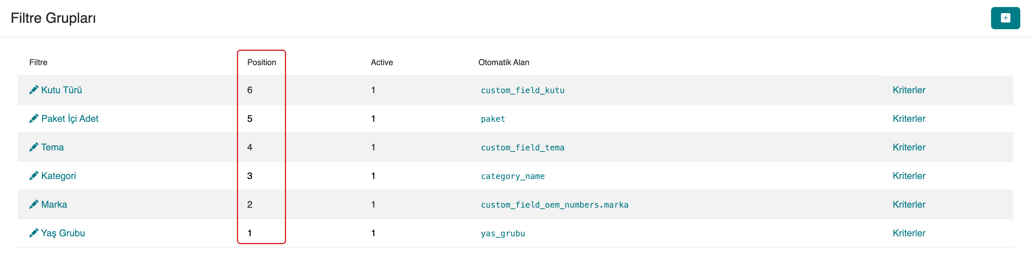 Pozisyon bilgisini doğru kullanarak son kullanıcılara ilk önce göstermek istediğiniz filtre grubunu ilk veya üst sıralarda gösterebilirsiniz. İlk sırada göstermek için 1 ile başlayın ve kriterlerinizi 1,2,3 ... şeklinde önceliklendirin.