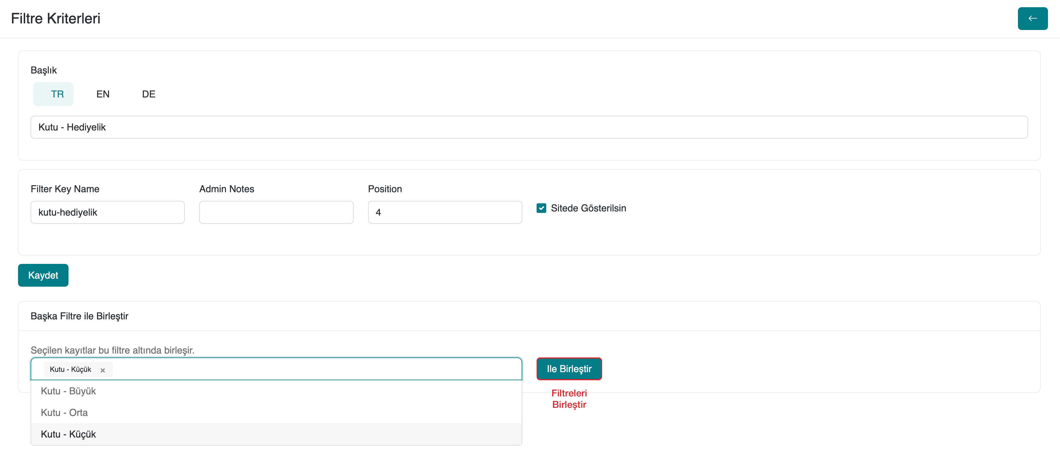 Kutu - Hediyelik ve Kutu - Küçük olarak tanımlanmış filtre kriterlerine sahip ürünleri Kutu-Hediyelik grubu altında birleştirelim.