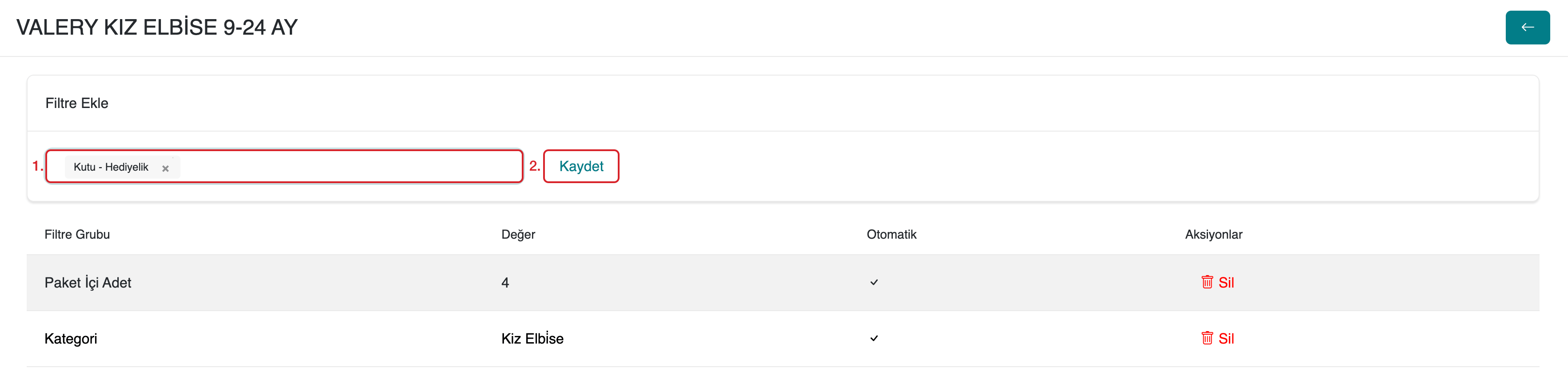 4. Ürüne Özel Filtre Kriteri Tanımlama