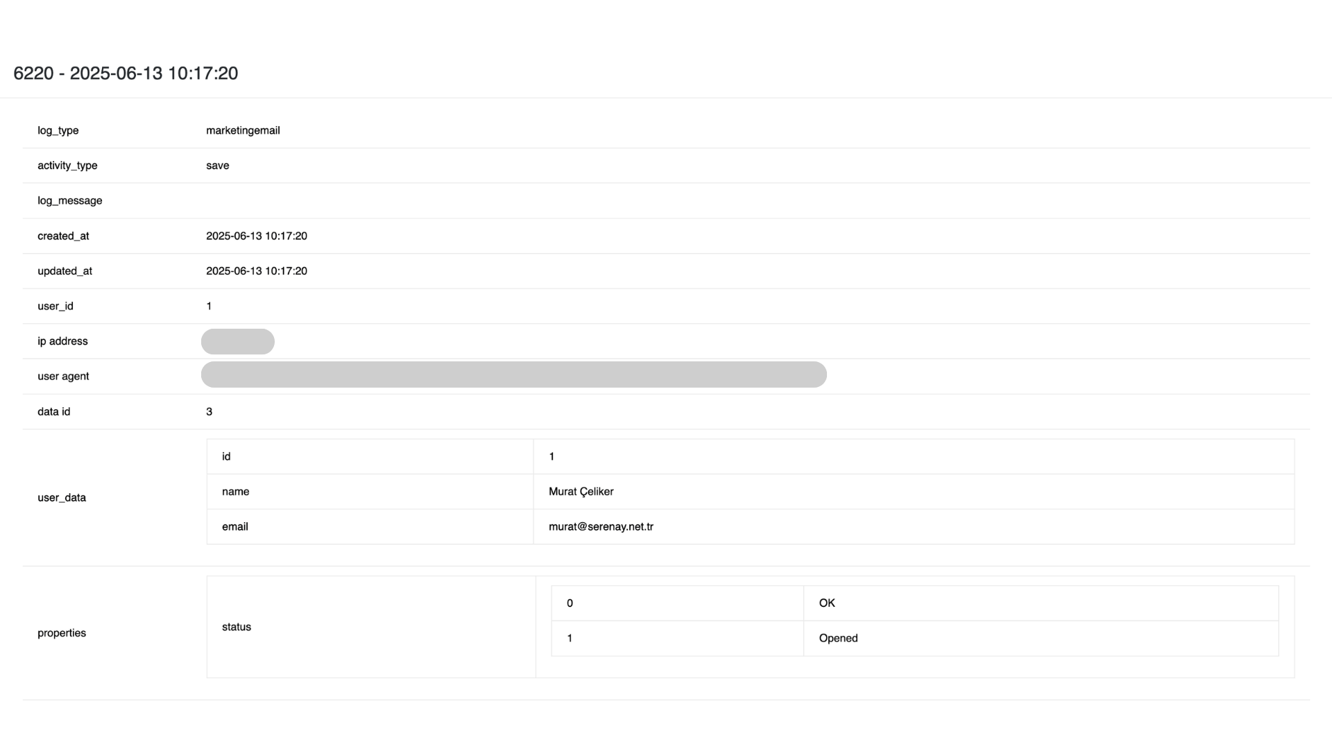 - created_at — Log kaydının oluşturulma tarihi ve saati