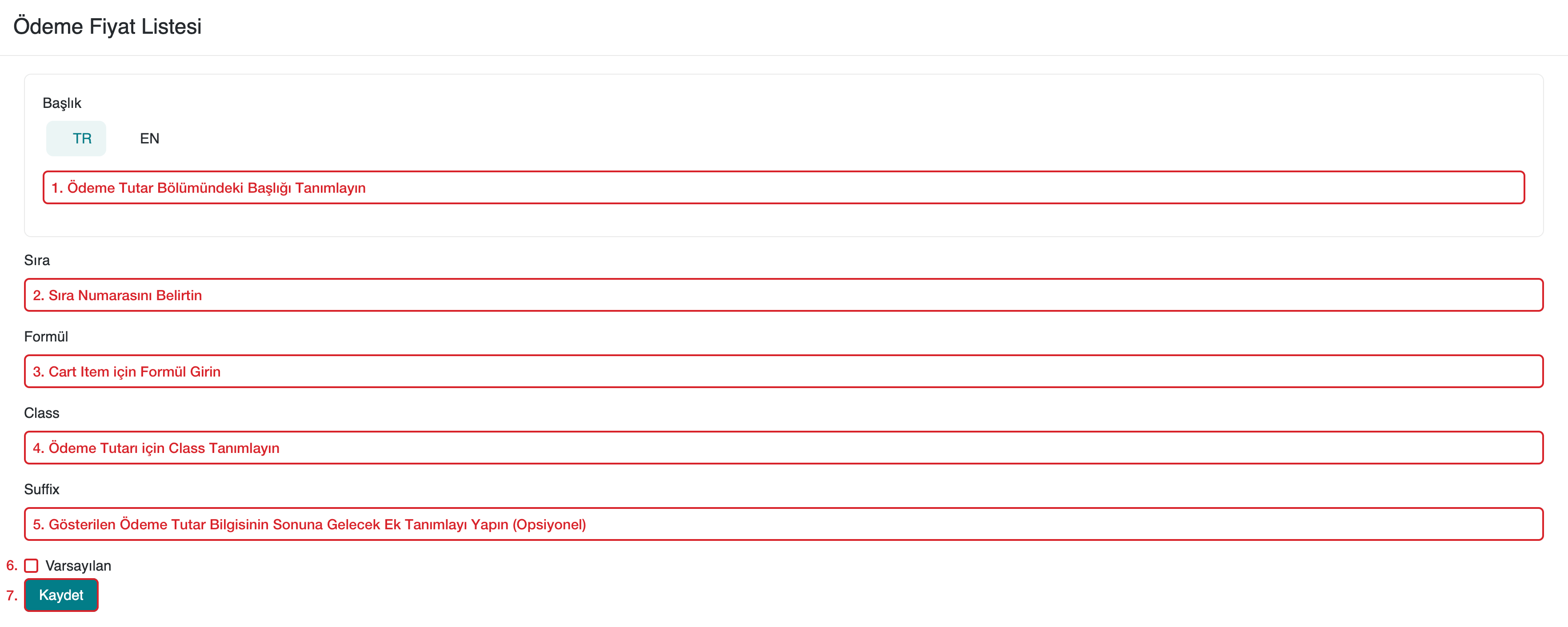 - Ödeme Tutar Bölümündeki Başlığı Tanımlayın: Ödeme tutarı için başlık girin (ör. "Toplam Tutar").