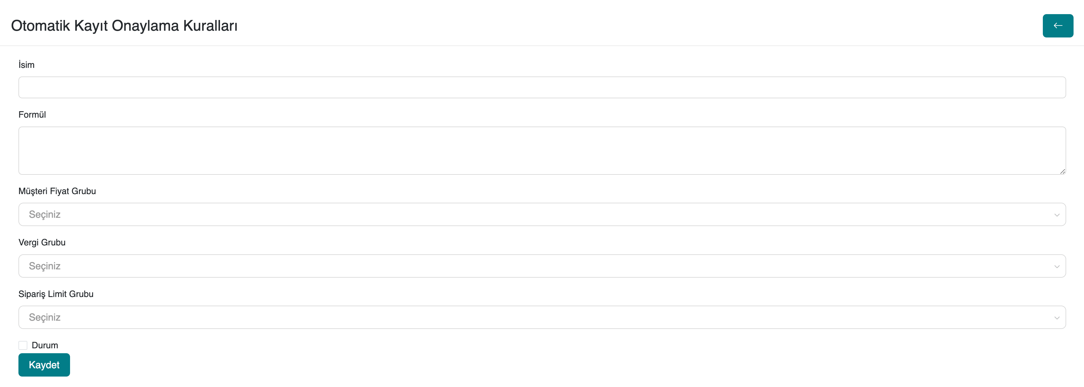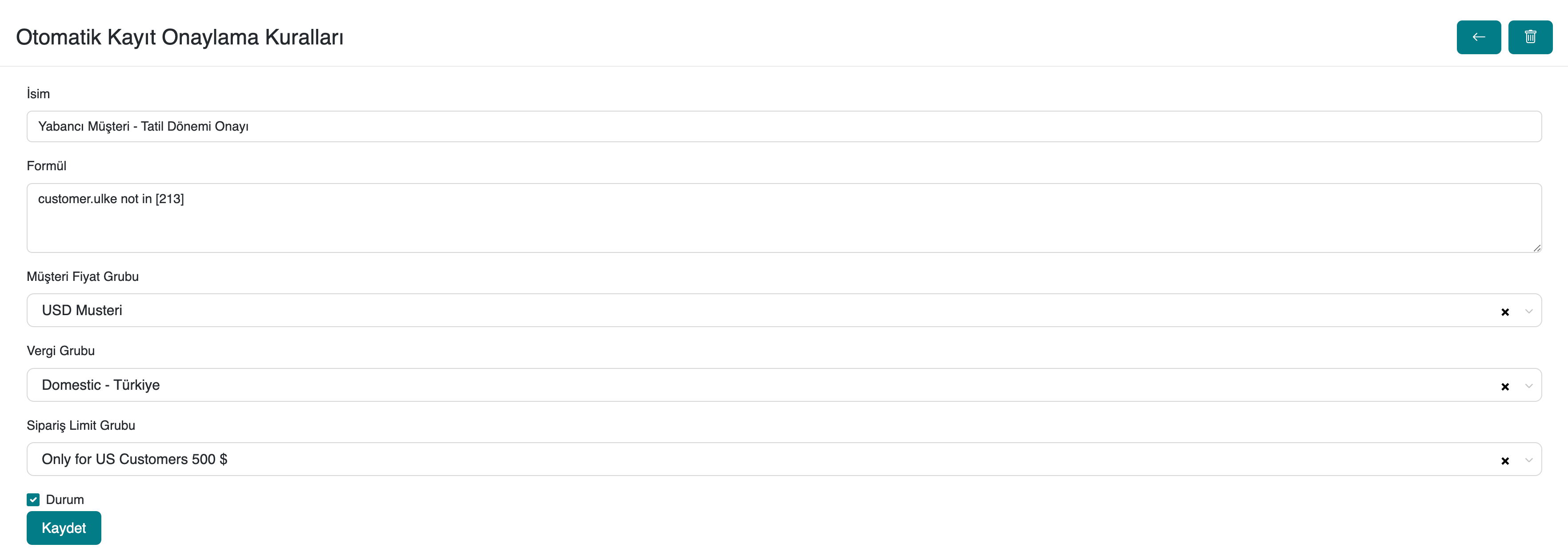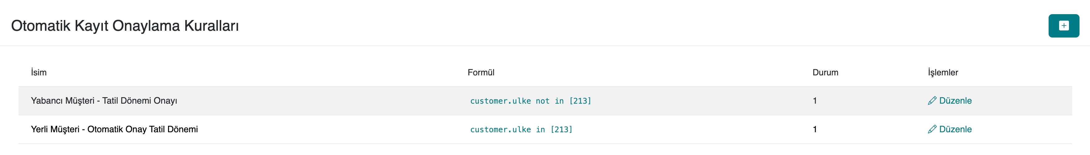 - Yeni otomatik kayıt onaylama kuralı oluşturma