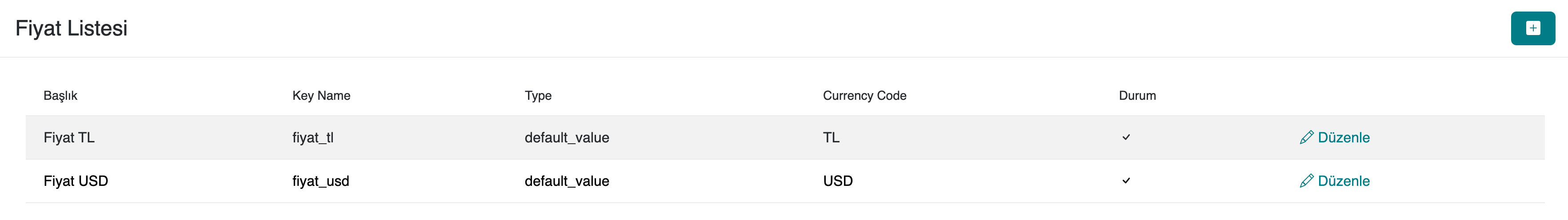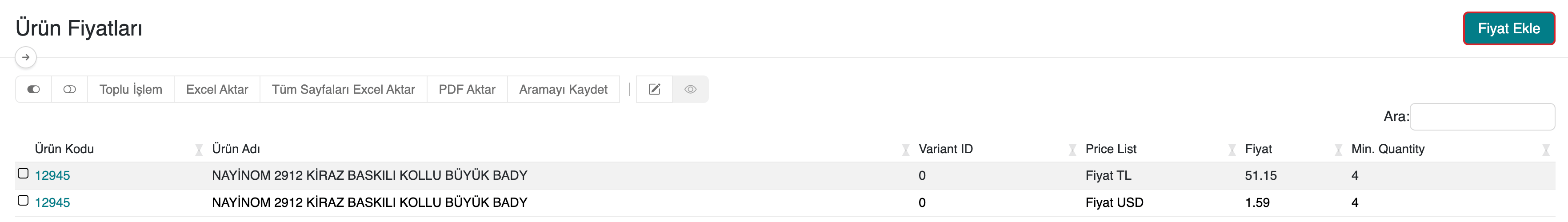 ii. Oluşturduğumuz fiyat listelerini görüntüleyelim.