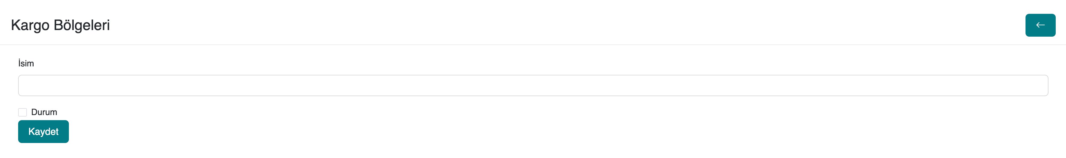 serB2B sisteminizde yeni kargo bölgesi oluşturmak için yönetici panelinden Ayarlar > Kargo Bölgeleri bölümüne gidin ve ardından sağ üst köşede bulunan + iconuna tıklayın.