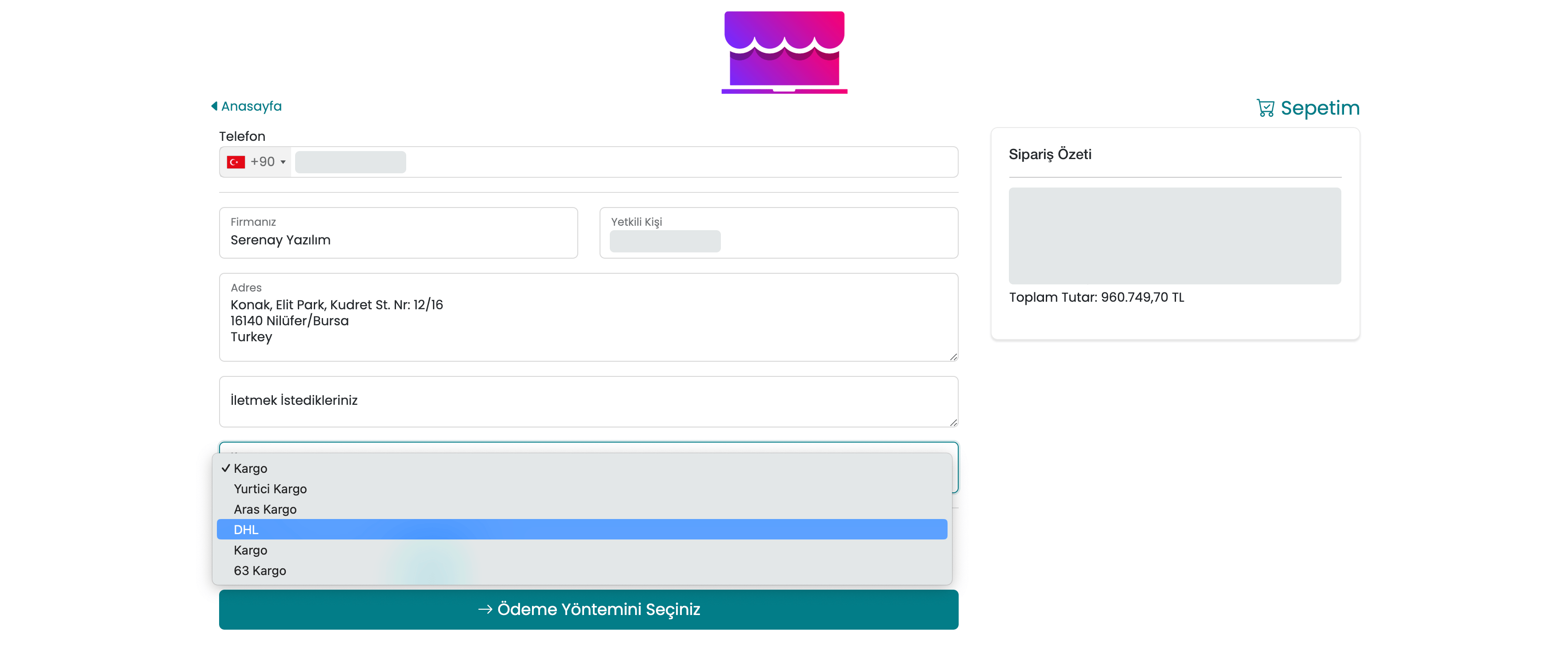 serB2B sisteminizde mevcut olan veya yeni oluşturduğunuz kargolar müşterileriçin ödeme sayfasında (checkout page) görüntülenir.
