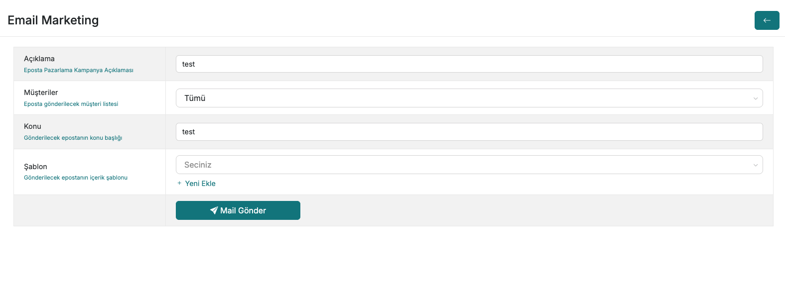 - Tüm bilgileri kontrol ettikten sonra Mail Gönder butonuna tıklayın. Sistem, seçilen filtreye uyan tüm müşterilere e-postayı iletecektir.