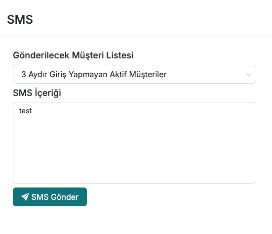 Mesajınızı kontrol ettikten sonra "SMS Gönder" butonuna tıklayarak işlemi tamamlayın. Sistem, seçilen filtreye uyan tüm müşterilere mesajı iletecektir.