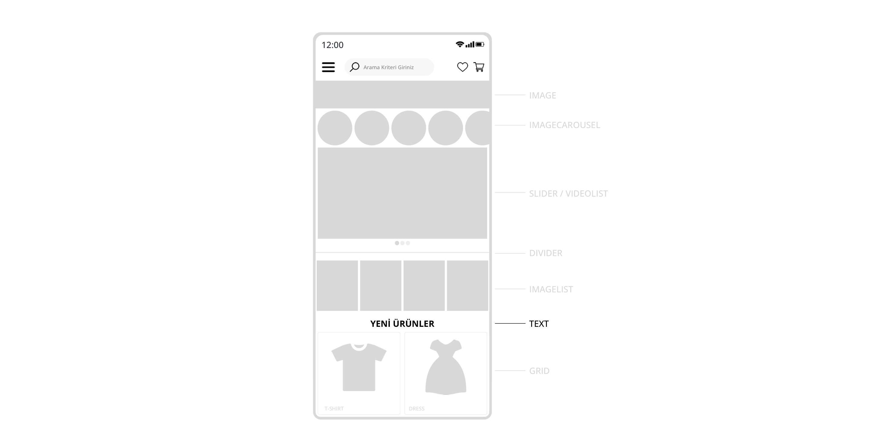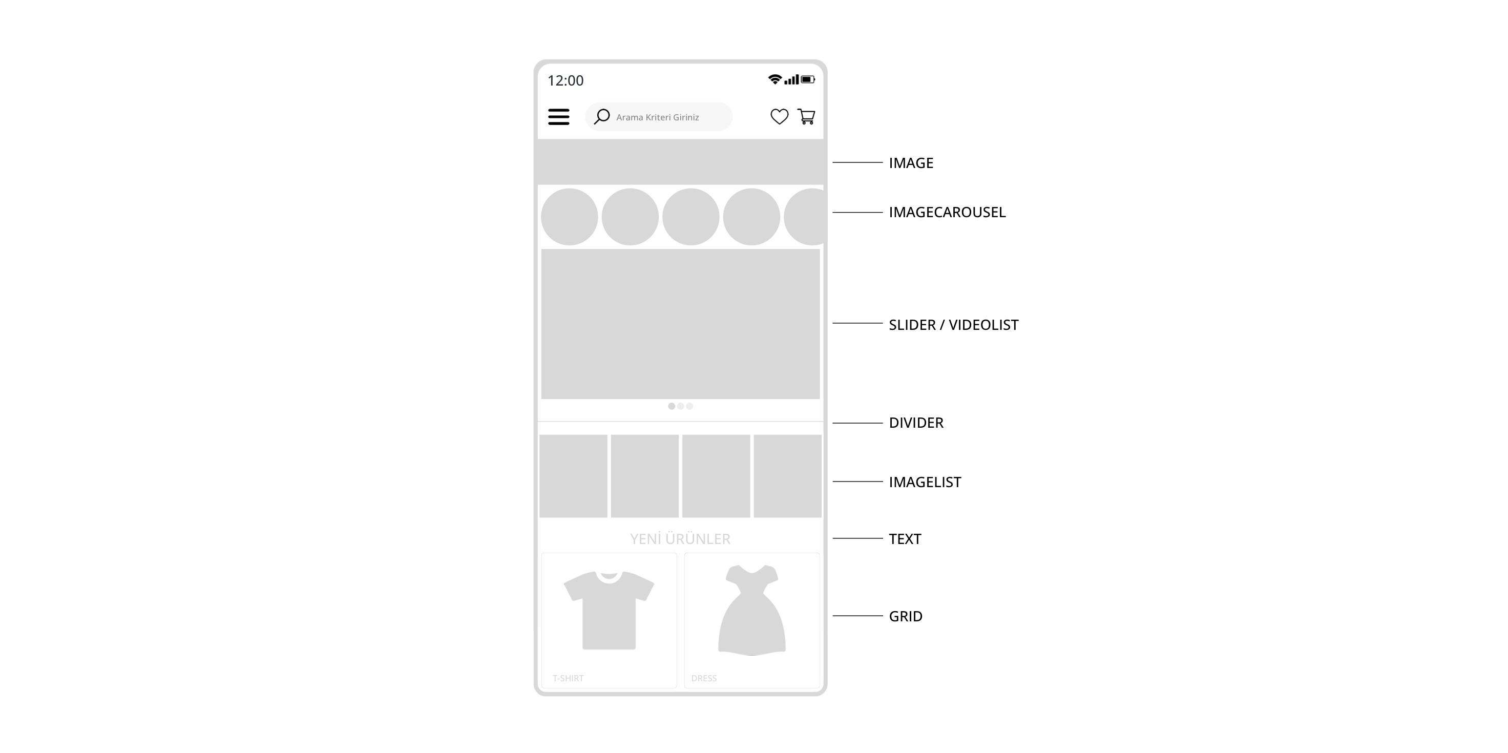 - Örnek olarak; Main Category, Category, Brand, Group, Modal, Search gibi.