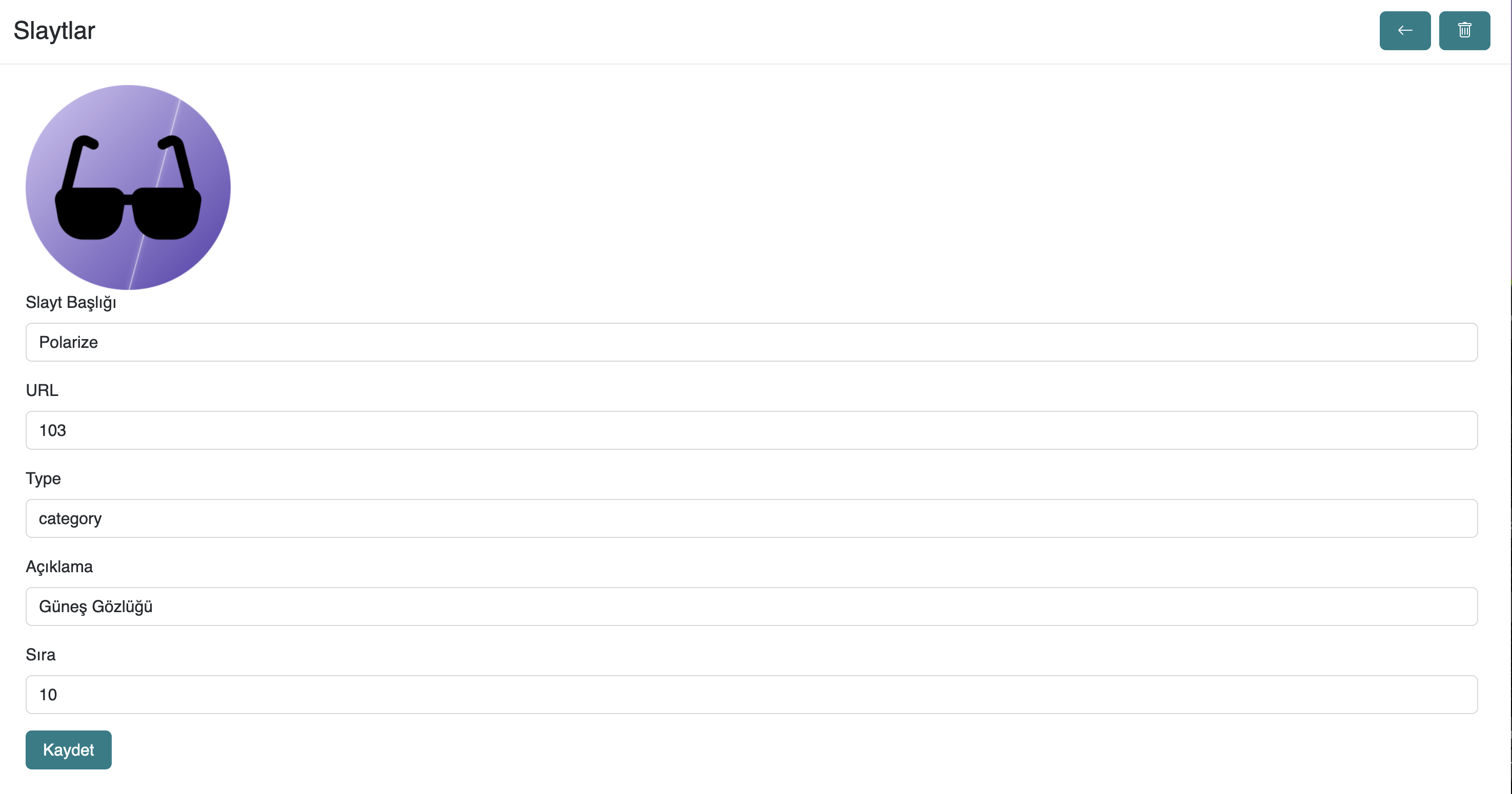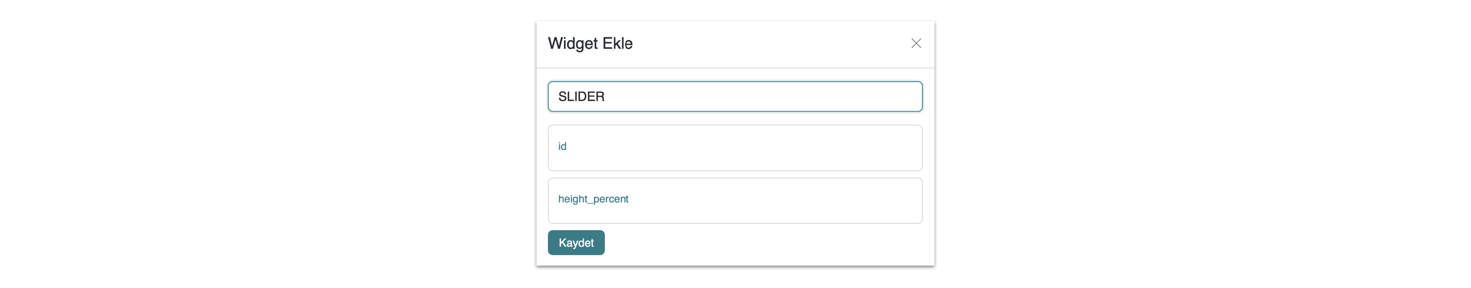 Bu widget ile dilediğiniz resimleri öncelikle Admin paneli üzerinden Tasarım > Slaytlar bölümüne ekleyin. Oluşturmuş olduğunuz Slayt'ın ID değerini SLIDER widget eklerken id alanına girin.