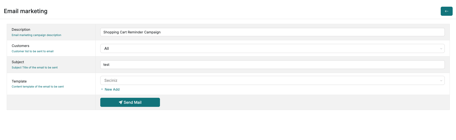 serEmail Marketing module is used to send bulk emails to customers in your system. It allows you to easily send messages for campaigns, newsletters, or reminders.