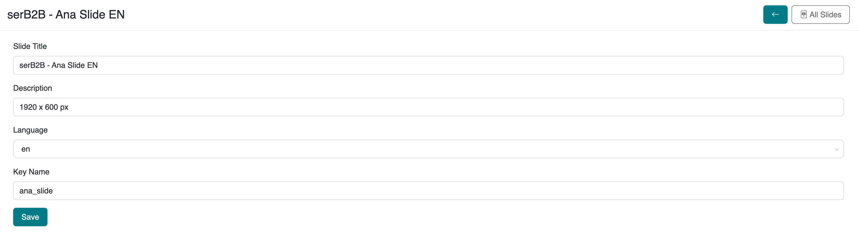 Define Description: Provide a description of the slide. (For example, define the standard resolution value of the images you want to upload, such as "1920 x 1080 px.")