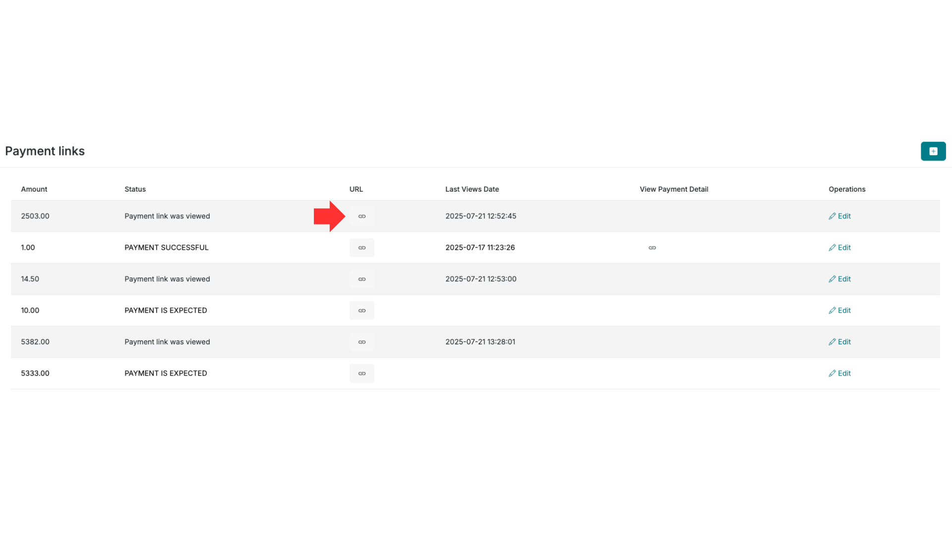 A payment link will be automatically generated. Click the chain icon under the URL tab to copy the link.