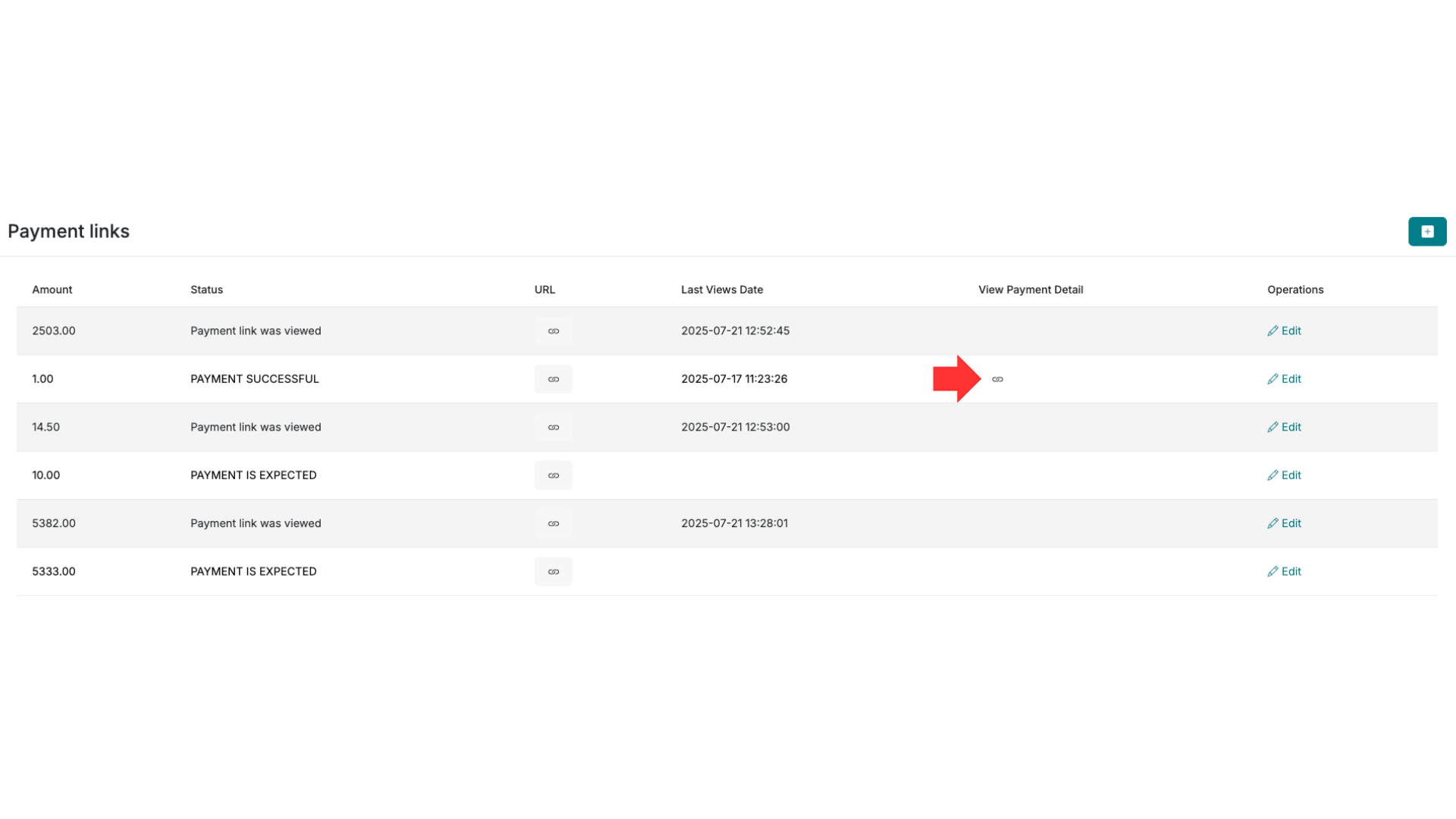 Once the payment is completed, click the View Payment Details icon to access the related transaction page.