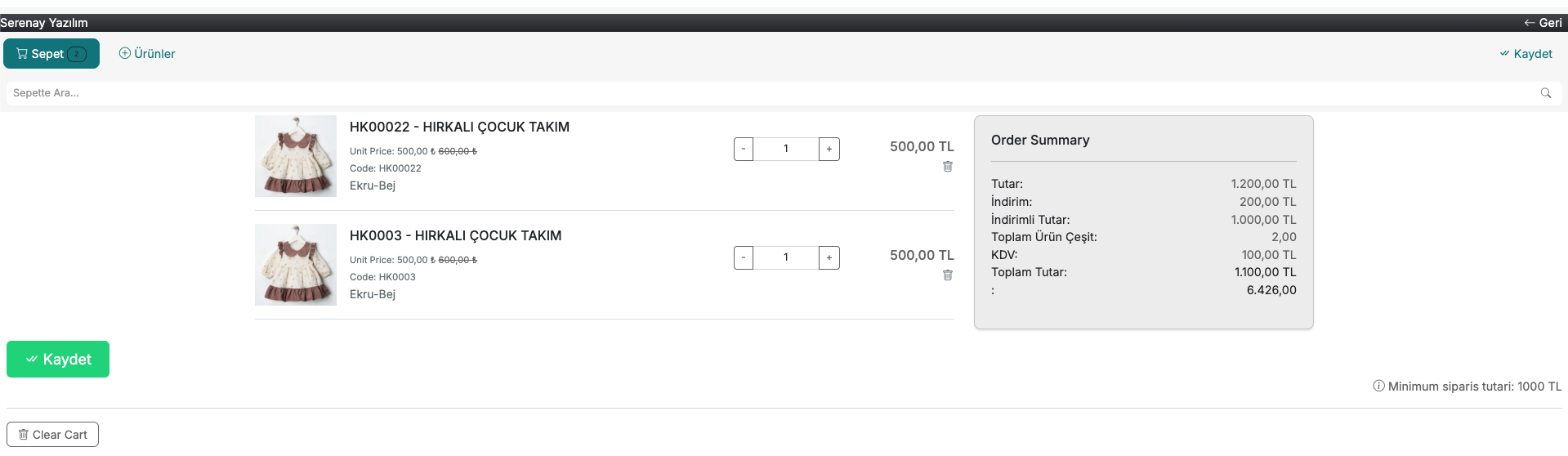 For information or support, please contact us via the Serenay Yazılım Support System.