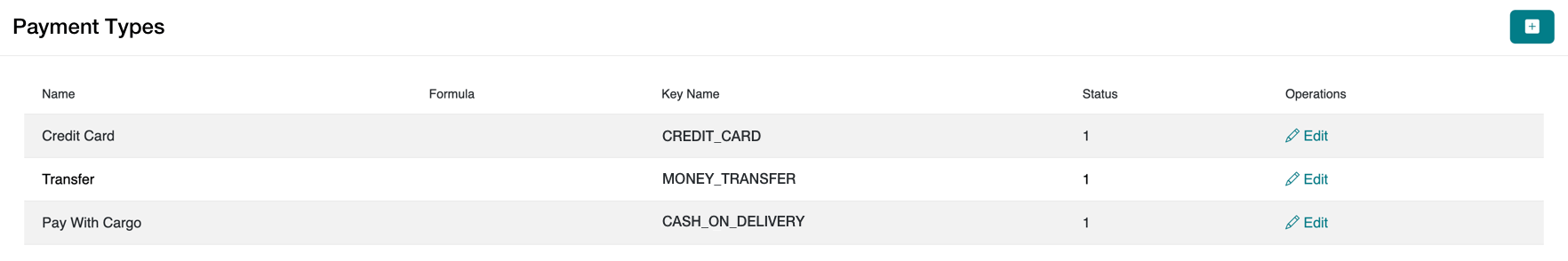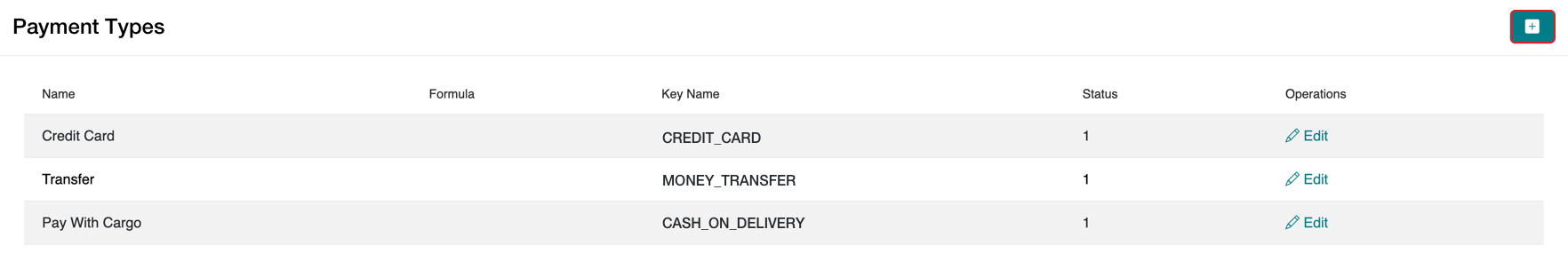 - Find the payment type you added and click the Edit button.