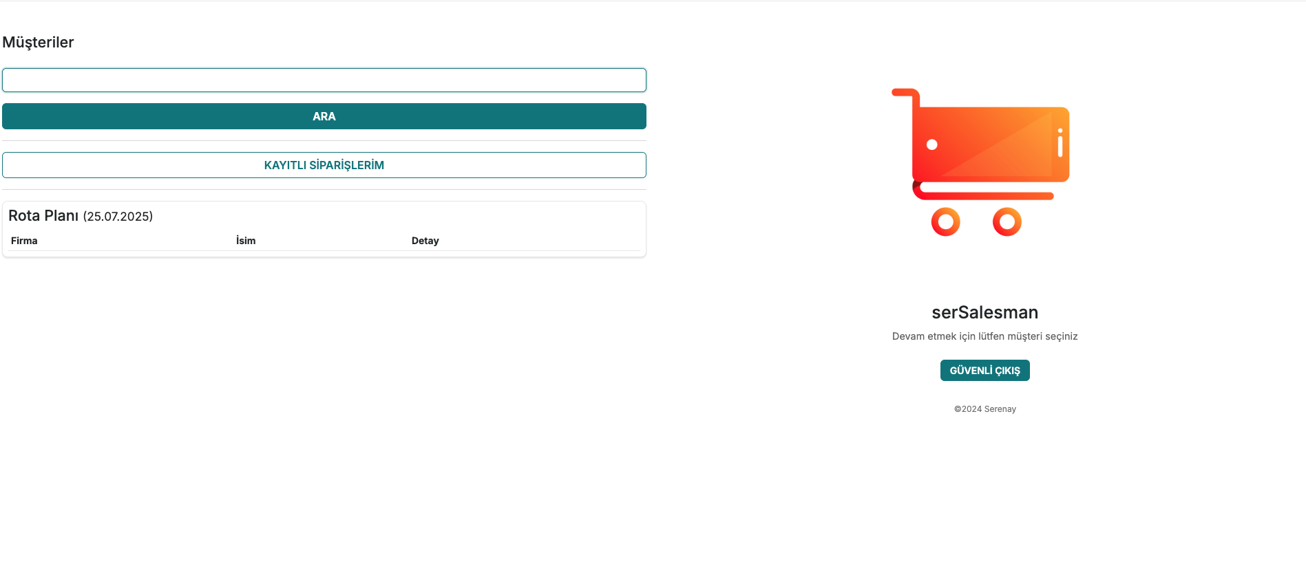 serSalesman, Siparişler → serSalesman ekranında saha satış temsilcileri için özel olarak geliştirilmiş, sade ve hızlı sipariş giriş ekranıdır.