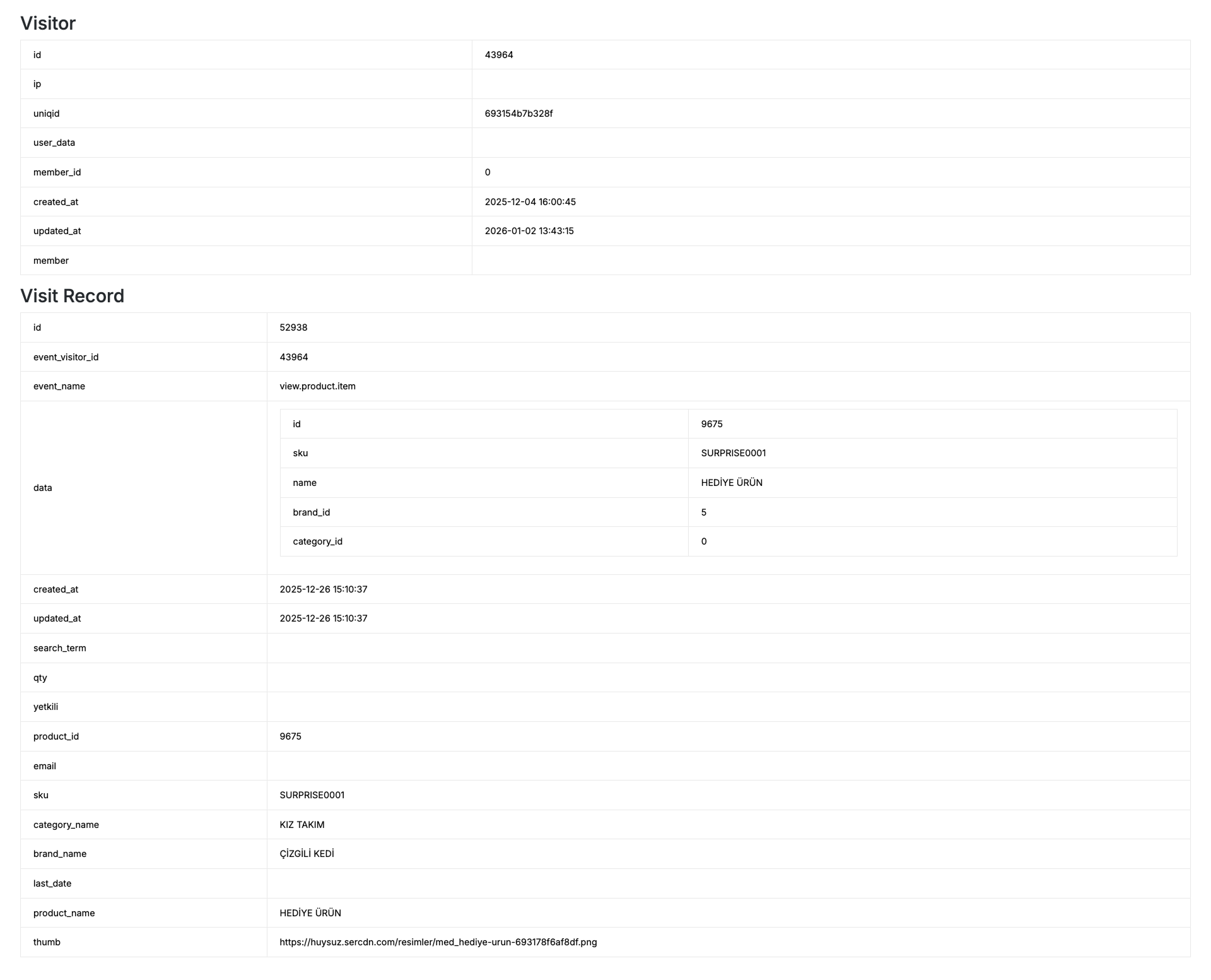 | created_at / updated_at | Ziyaretçi kaydının oluşturulma ve güncellenme tarihi |