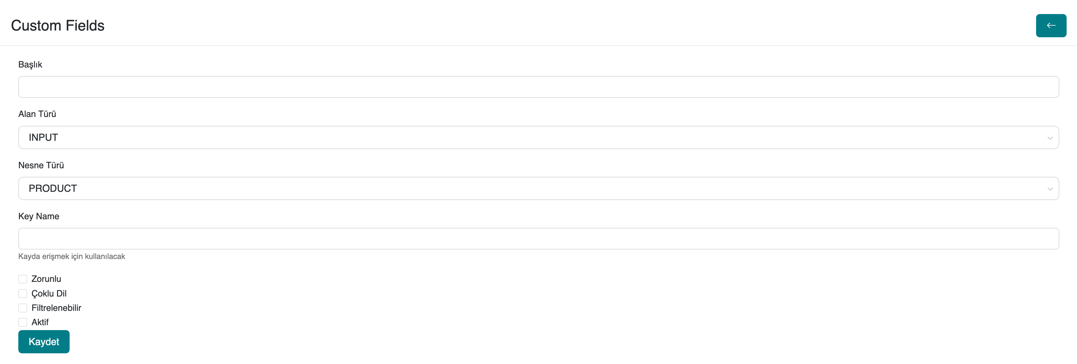 Yönetici panelinde Ayarlar > Custom Fields (Özel Alanlar) bölümünde sağ üst köşedeki + butonuna tıklayarak yeni özel alan ekleyebilirsiniz.