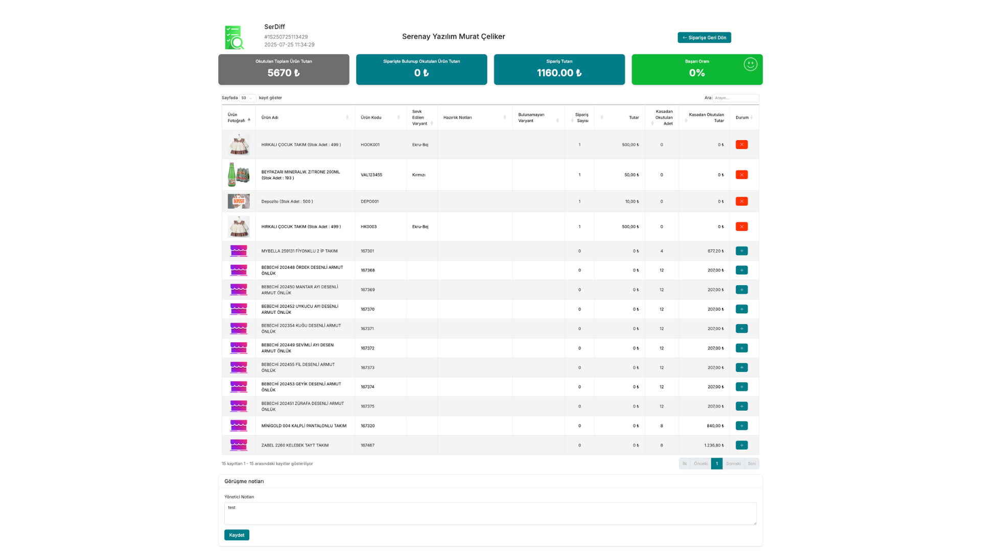 Bu modül, sipariş süreçlerindeki olası insan hatalarını hızlıca tespit etmek için güçlü bir analiz aracıdır.