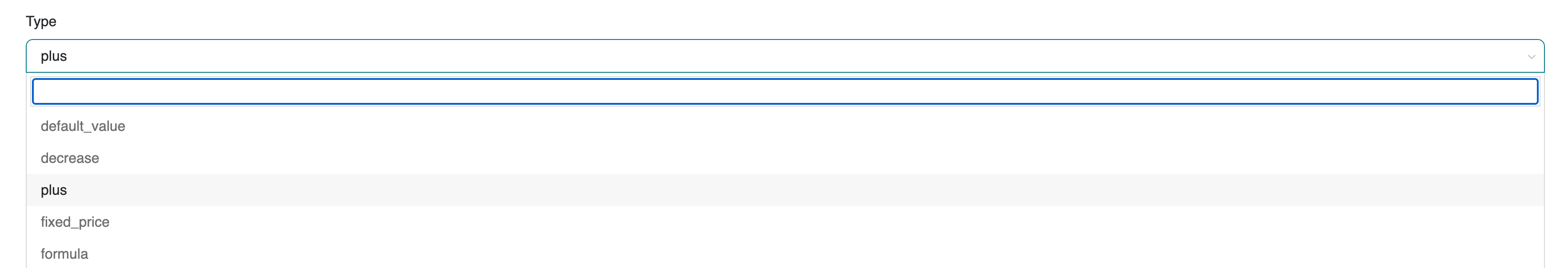 - Type: Yeni fiyat listesi türetirken artış, azalış miktarı belirleyin.