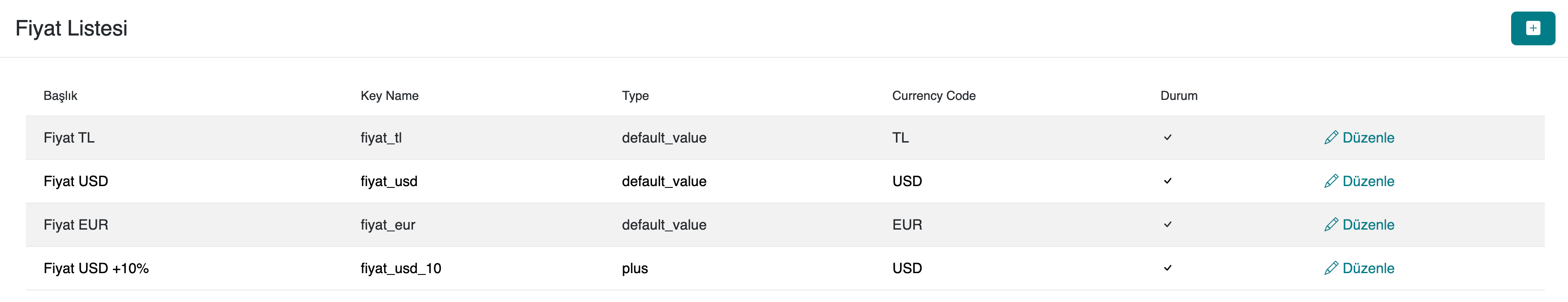 Fiyat Listeleri bölümündeki sağ üst köşedeki + butonuna basın.