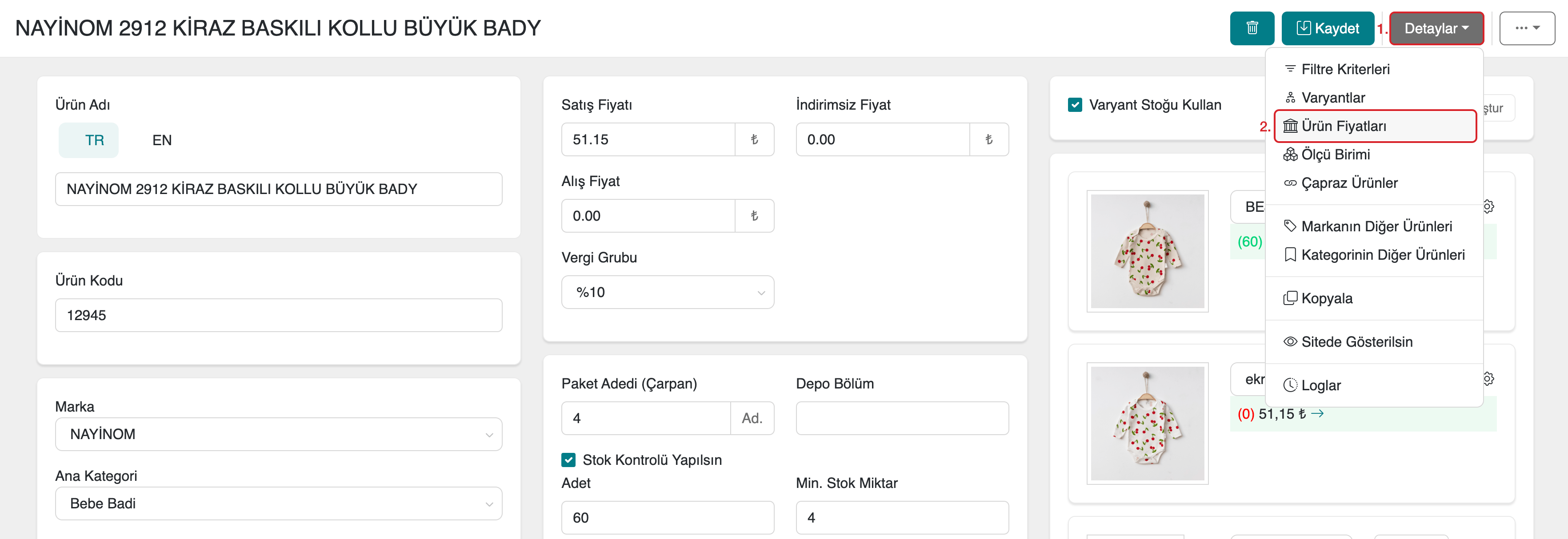 3. Bir Ürüne Birden Fazla Fiyat Tanımlama