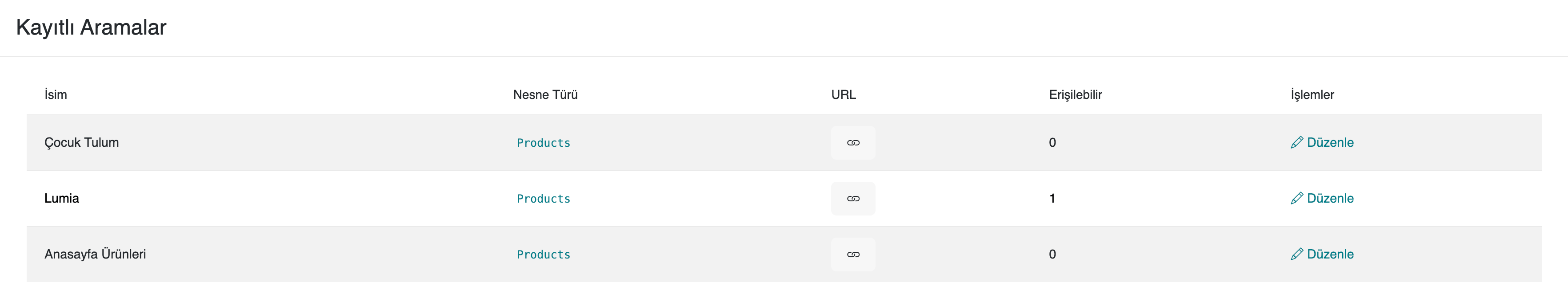 Örnek : Ürünler sayfasındaki kayıtlı aramaları görüntüleyelim.