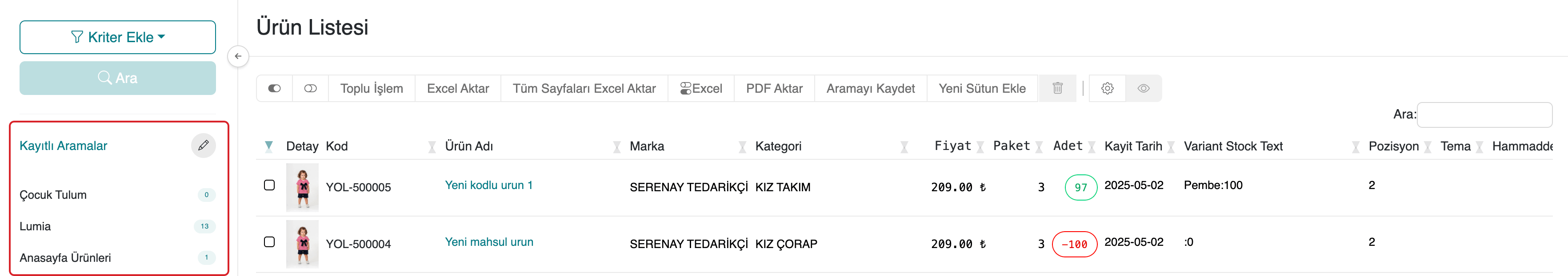 serB2B yönetici panelinizin Ayarlar menüsünden Ayarlar > Kayıtlı Aramalar bölümüne gidin ve kayıtlı aramalarınızı listeleyin.